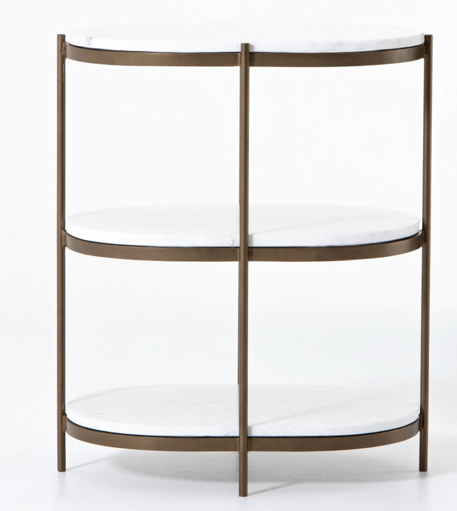 Felix Oval Nightstand, Antique Brass and Polished White Marble
