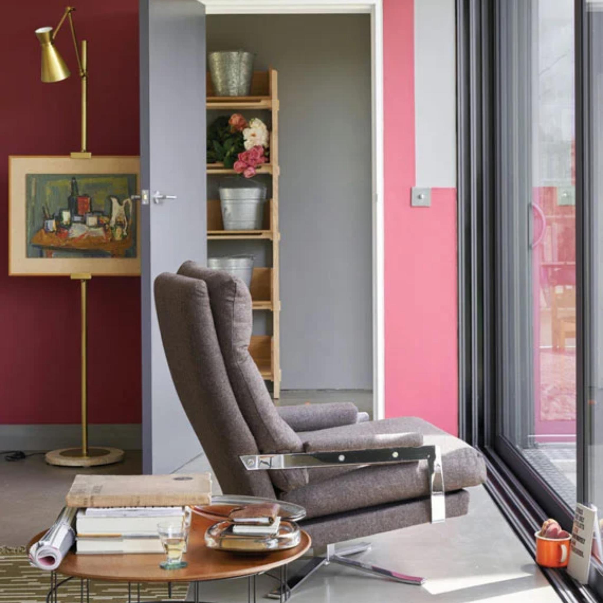 Radicchio is a very modern shade of red, with a distinct magenta undertone that gives it its contemporary feel. It creates rooms that feel vibrant and energetic, but that also have a little more intrigue and complexity than those painted in a true, clean red with no discernible undertones.