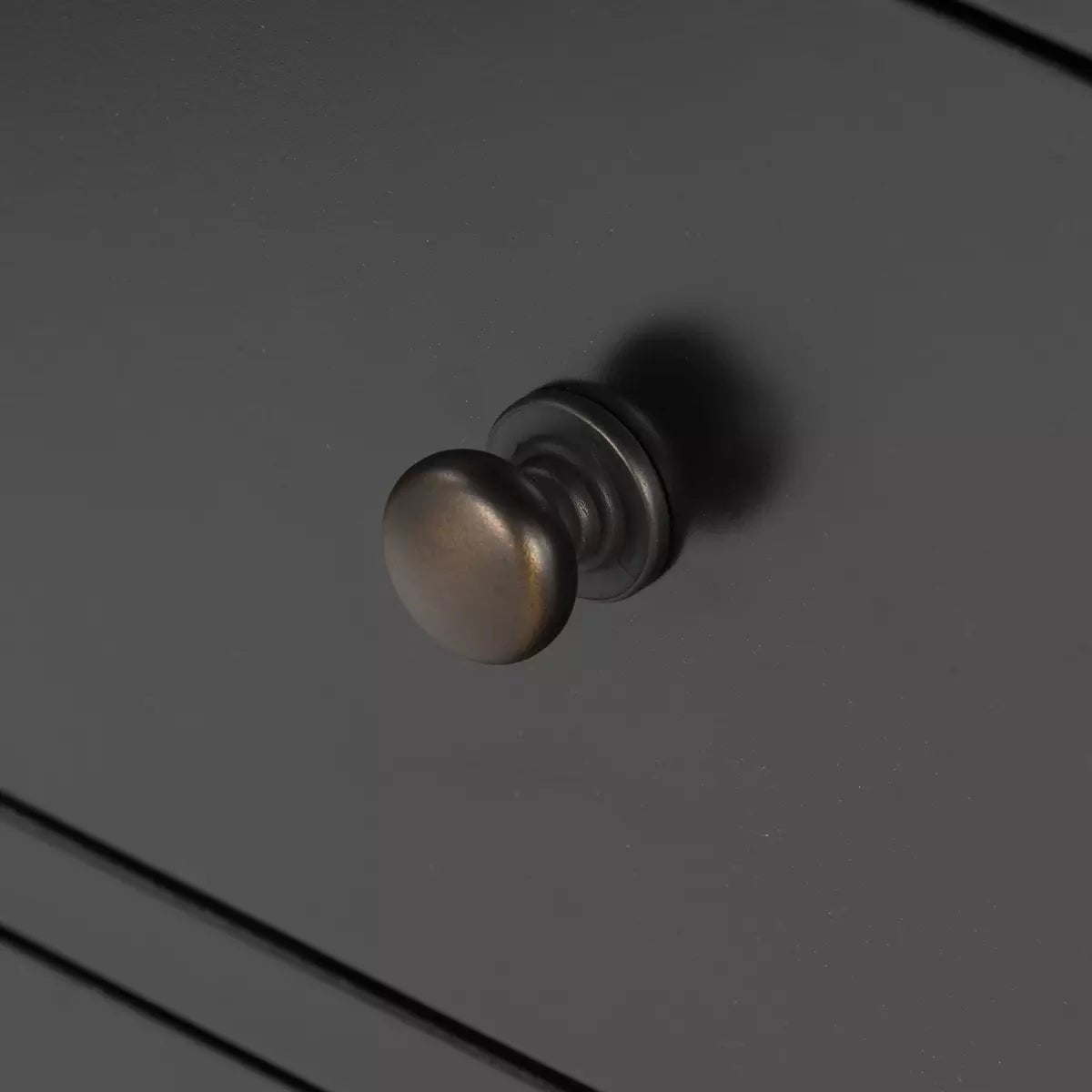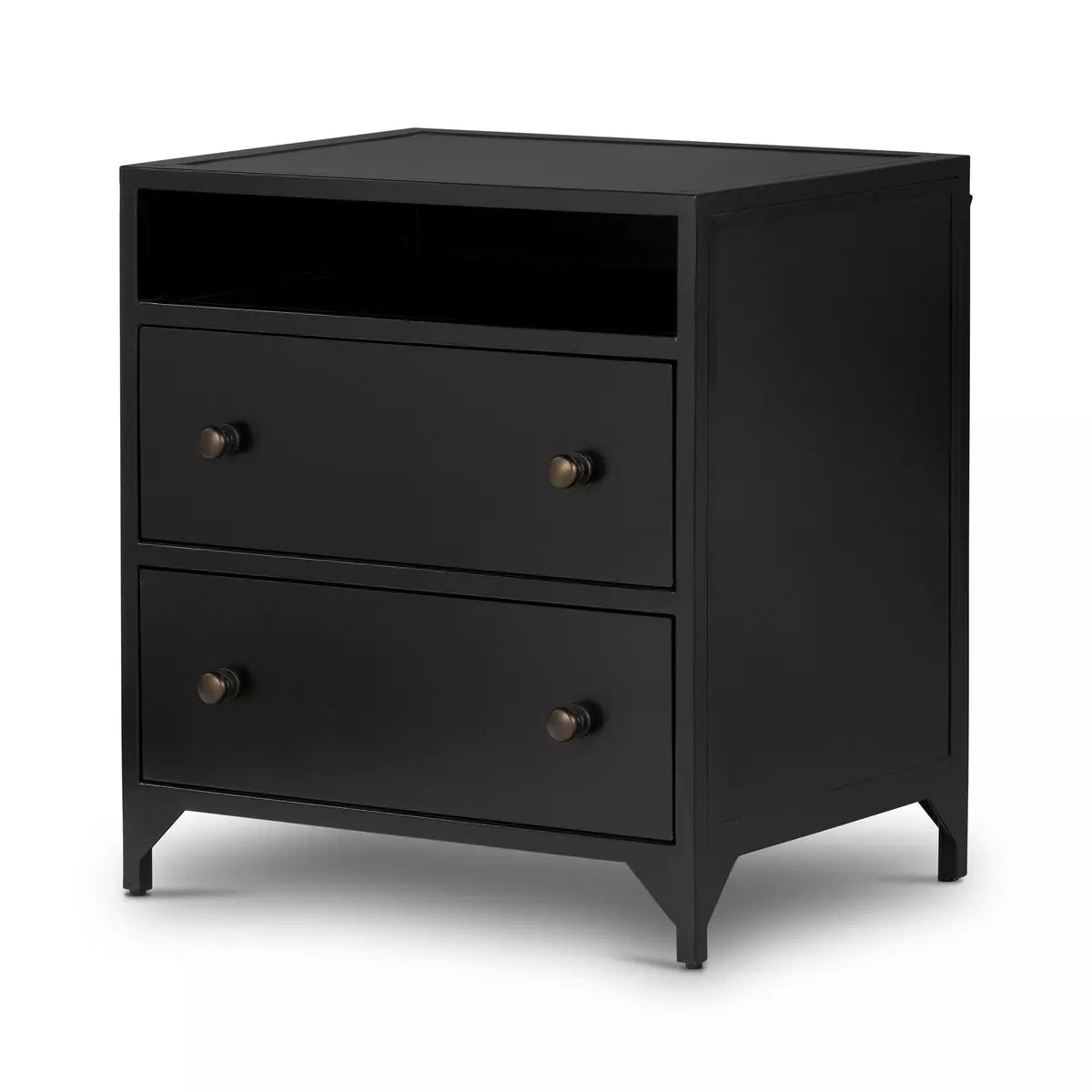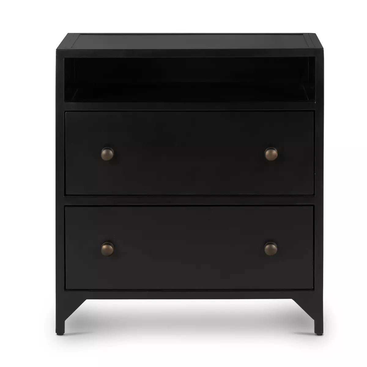 Introducing the Black Iron Nightstand - a quirky and industrial-inspired piece that adds character to any bedroom. Crafted from black-finished iron, it features twelve roomy and stylish drawers with bronzed knobs. Get organized and make a statement with this unique nightstand!