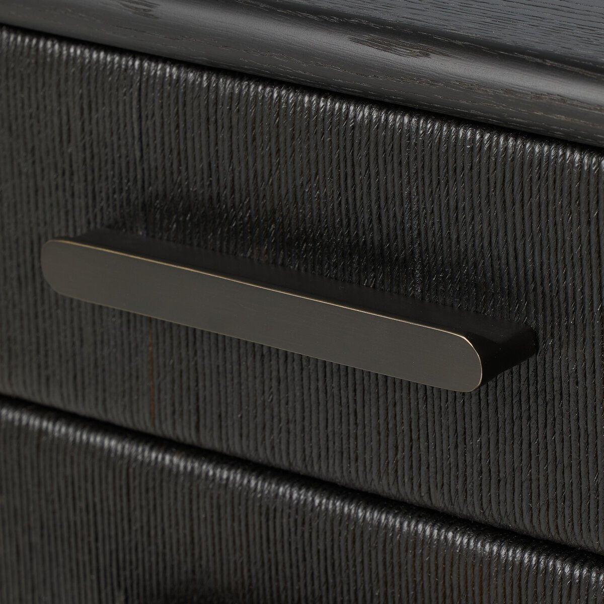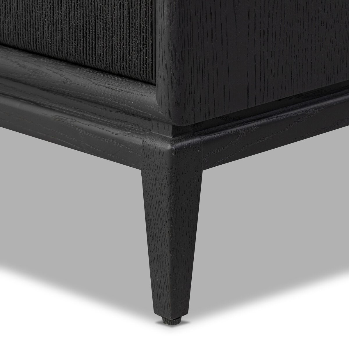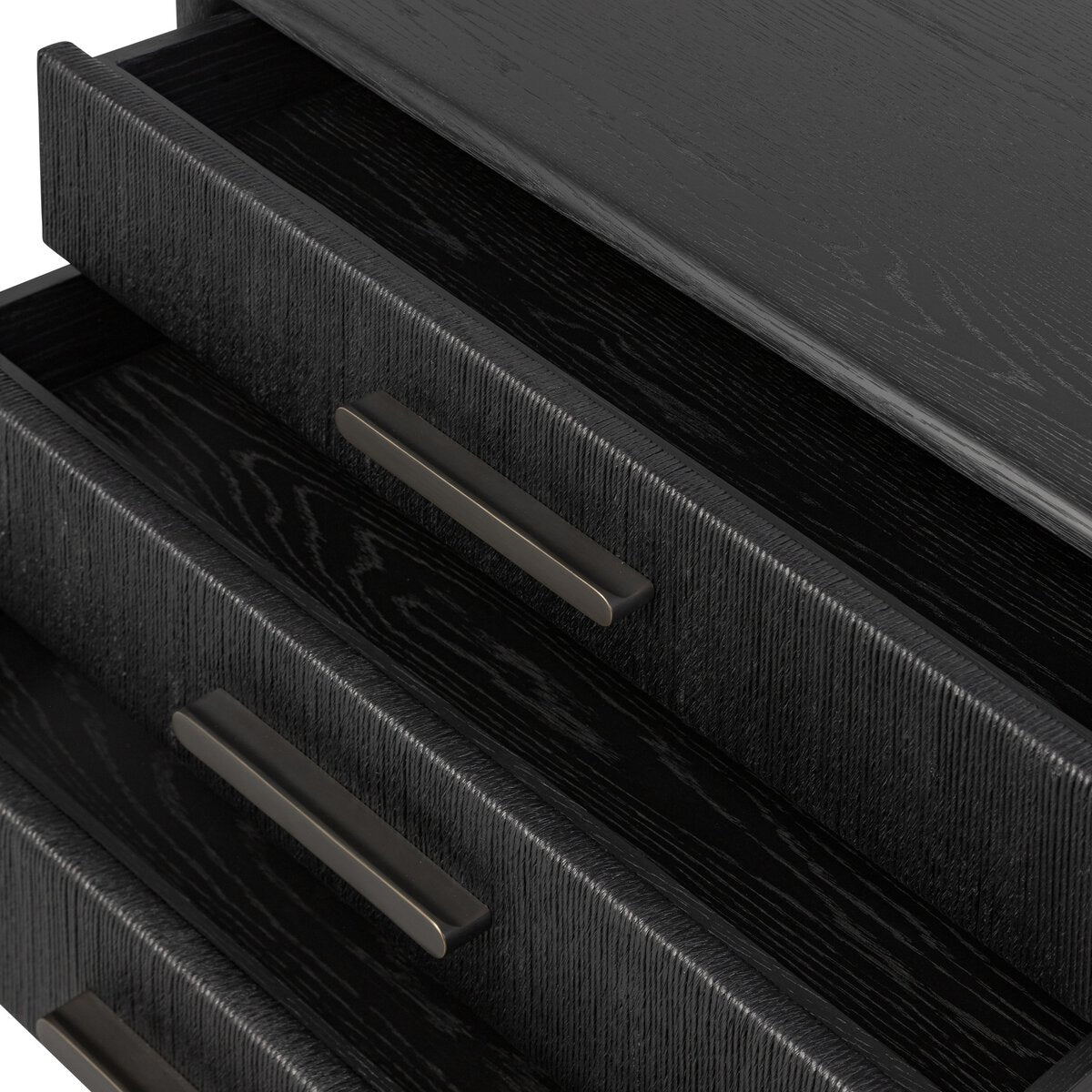 Elevate your bedside storage with a nightstand of black-finished oak. A smooth top pairs with three drawer fronts of woven paper cord for a dark, rich look that will work into your bedroom collection beautifully.