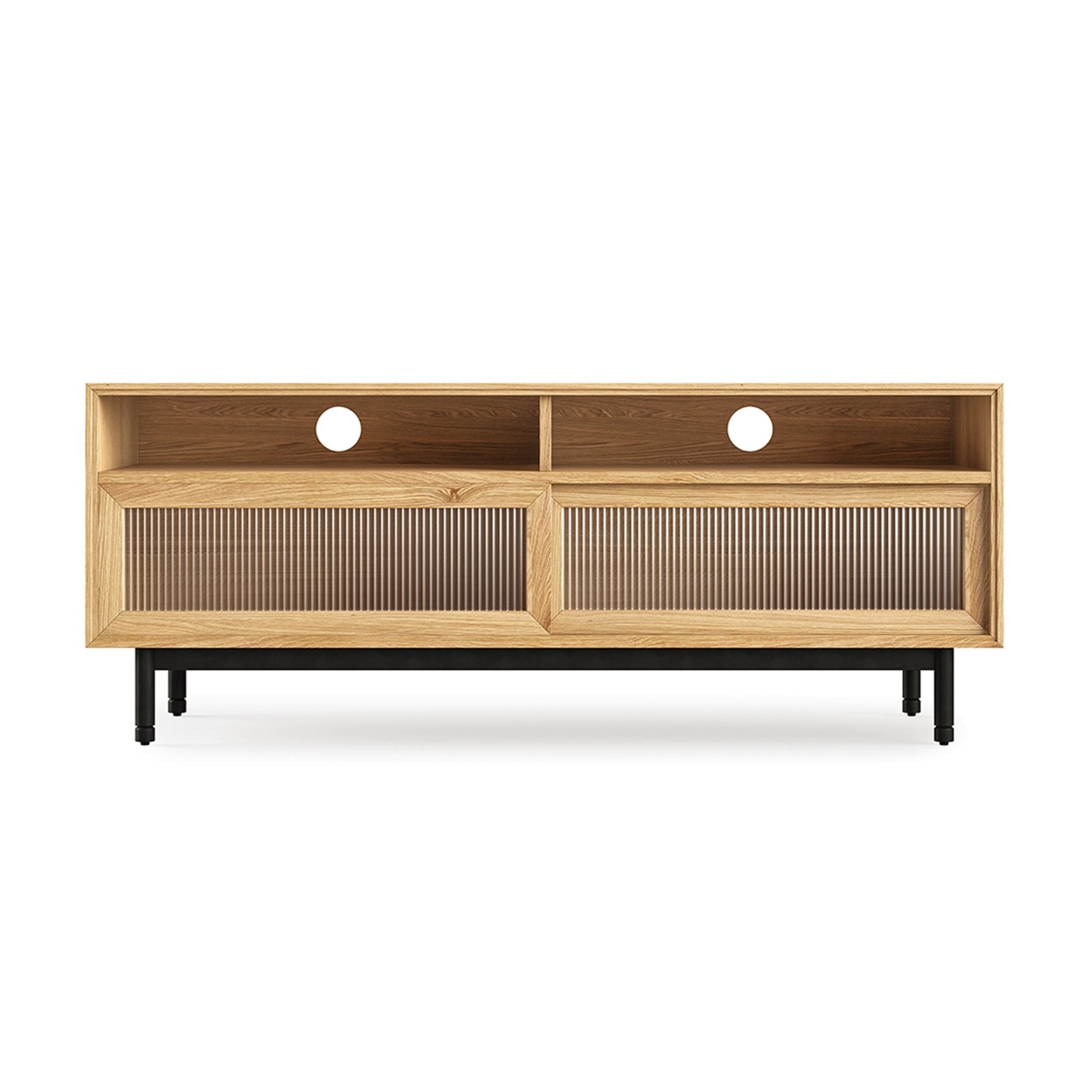Elegant, understated, and built to last—the Munro Media Stand offers a beautifully minimalist platform for your television, turntable, or hi-fi components. Featuring sliding fluted glass doors framed in solid wood, this media unit lets you discreetly showcase your gear while concealing visual clutter. Magnetic closures and smooth-gliding aluminum tracks allow the doors to open effortlessly and stay securely in place.
