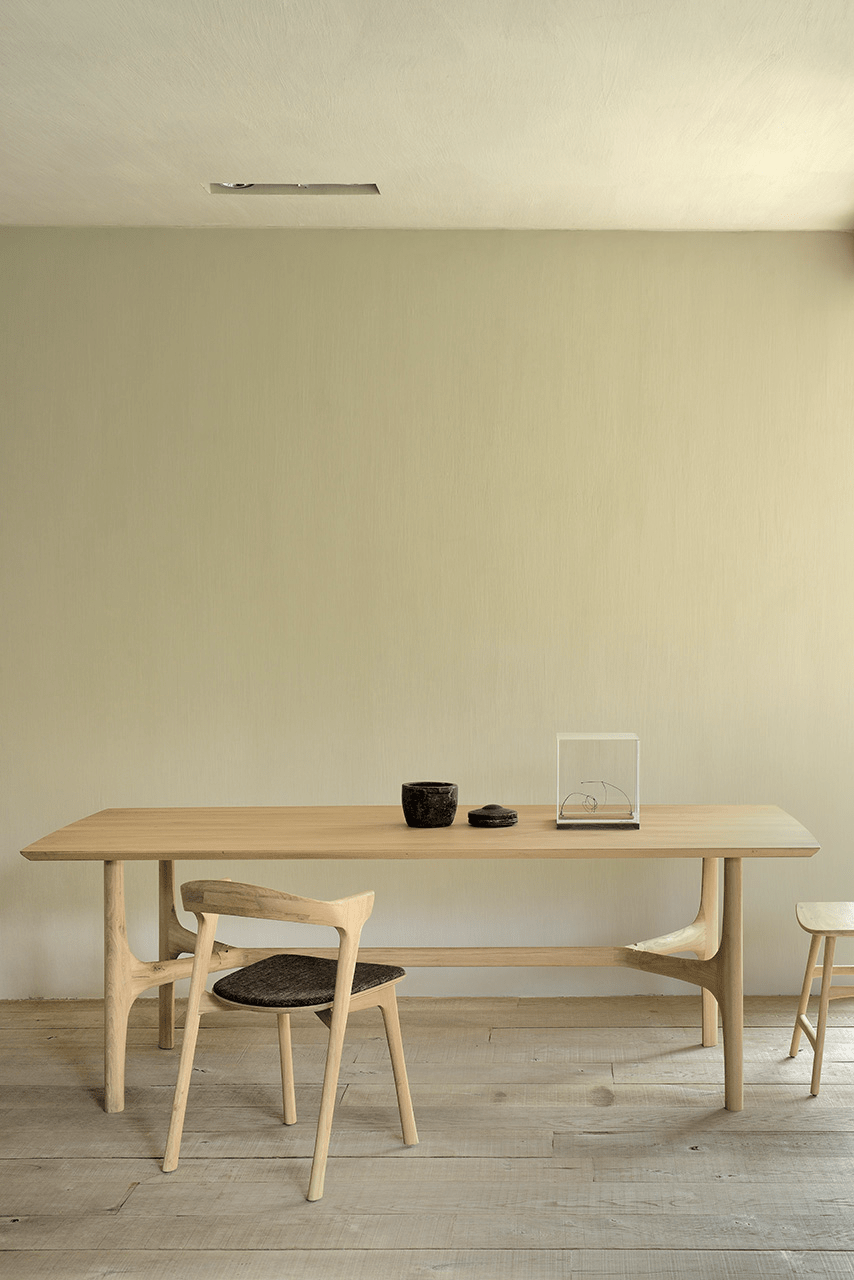 Experience the Sage Interiors bok dining chair—a timeless design by Alain van Havre that combines sculptural elegance with everyday comfort. Crafted in solid oak or FSC-certified teak, it features curved back “horns” and expert joinery. The airy yet sturdy silhouette brings Scandinavian craftsmanship and lasting style to any dining space.
