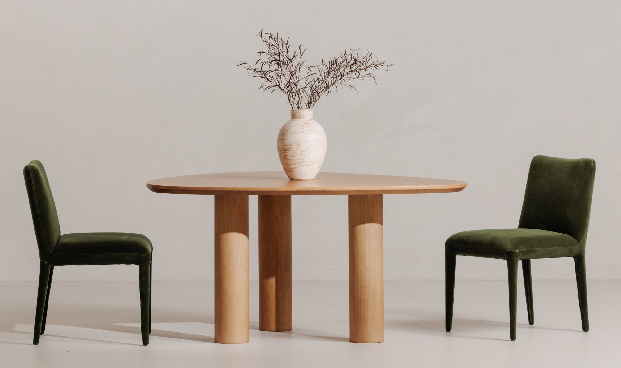 The Calla dining chair is fully upholstered in top-grain leather, generously padded for comfort and constructed with a robust ash wood frame and a rubber wood base. The comforting hue is effortlessly adaptable, allowing the chair to seamlessly integrate with any dining table, regardless of color or style.