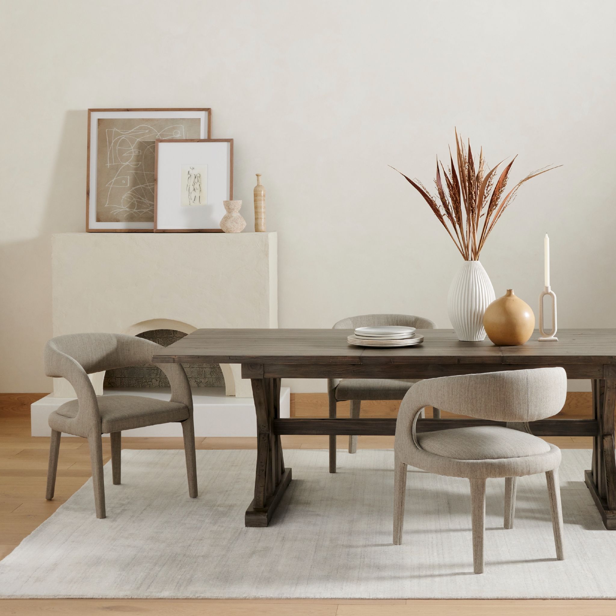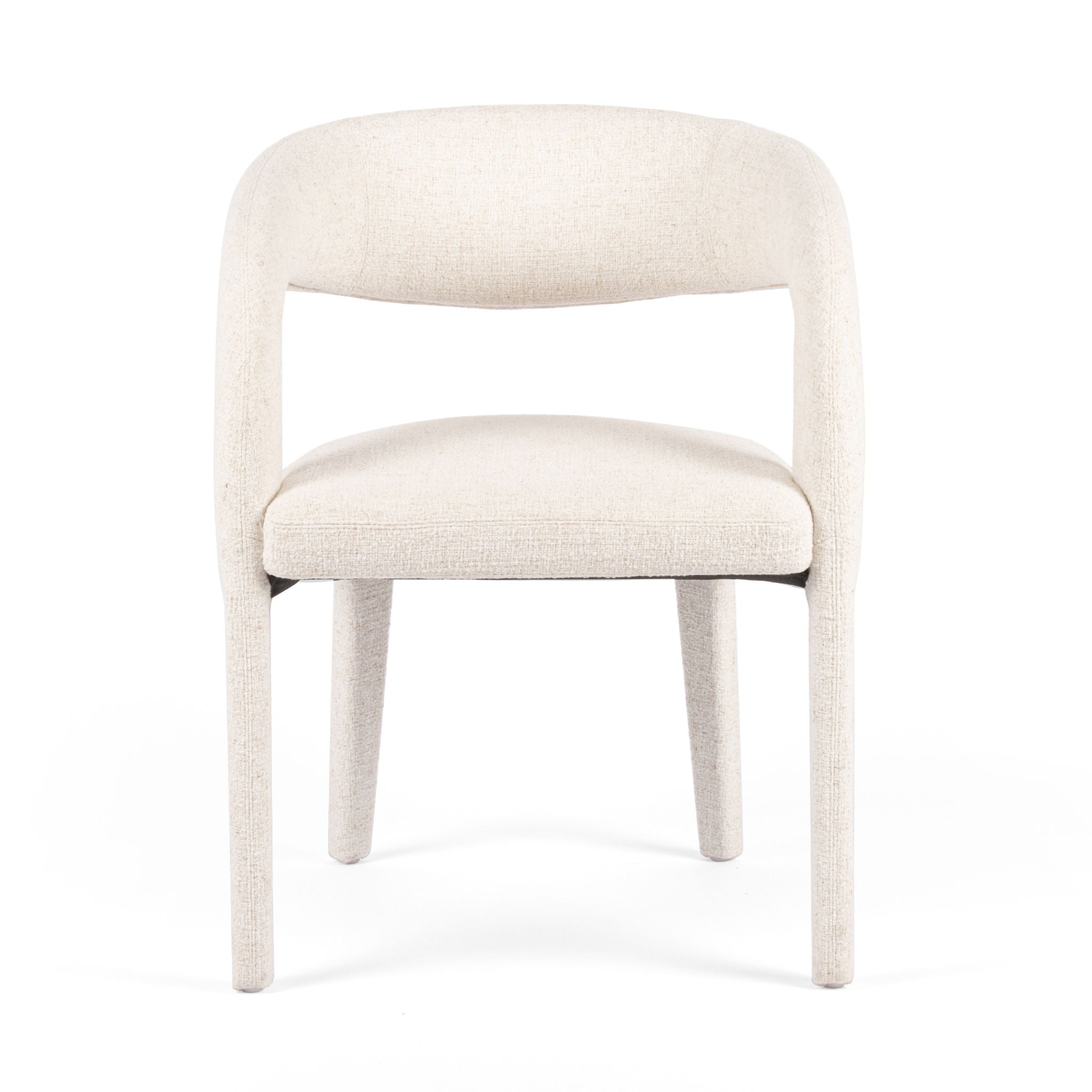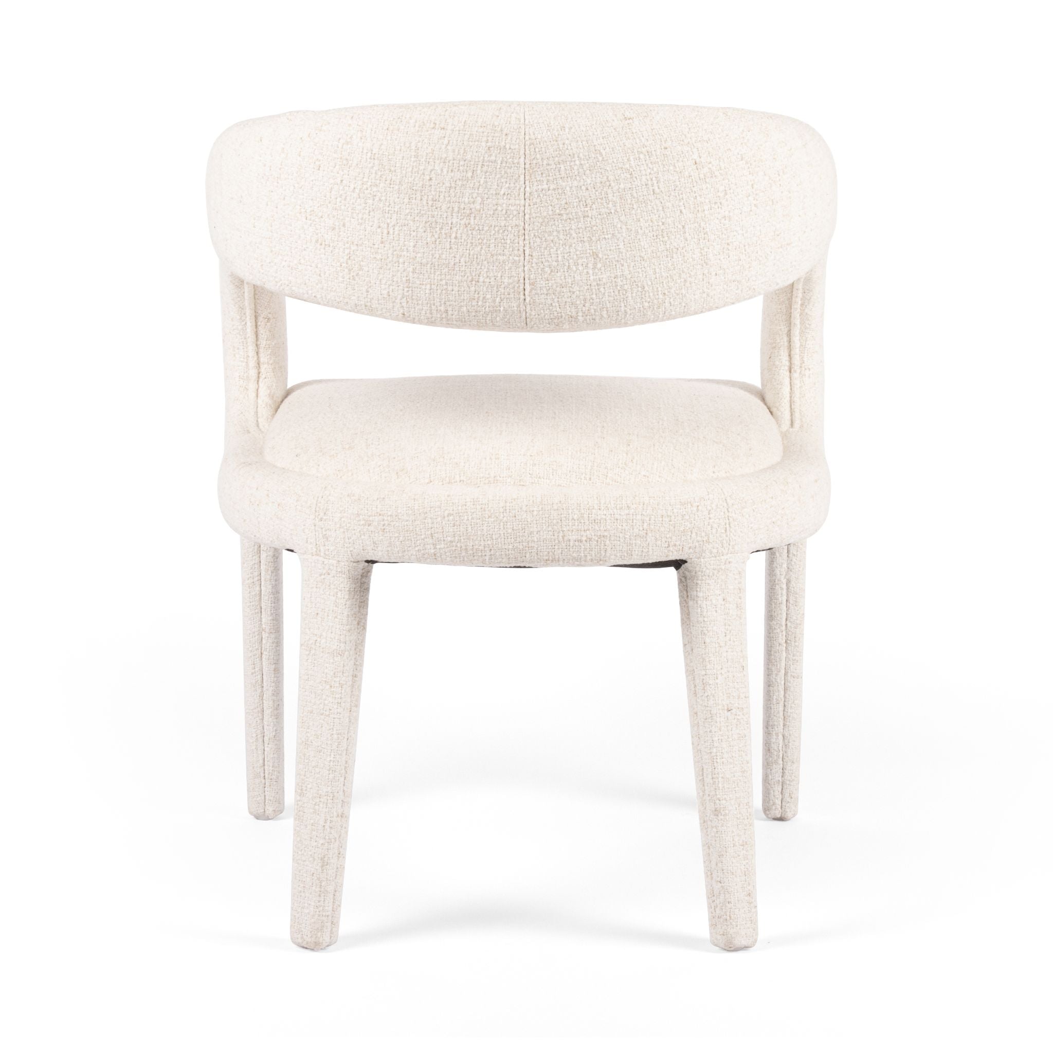 Strike a pose. Well curved and finely sculpted, with linen-blend upholstery makes for a shapely and sensible addition to the modern dining room.