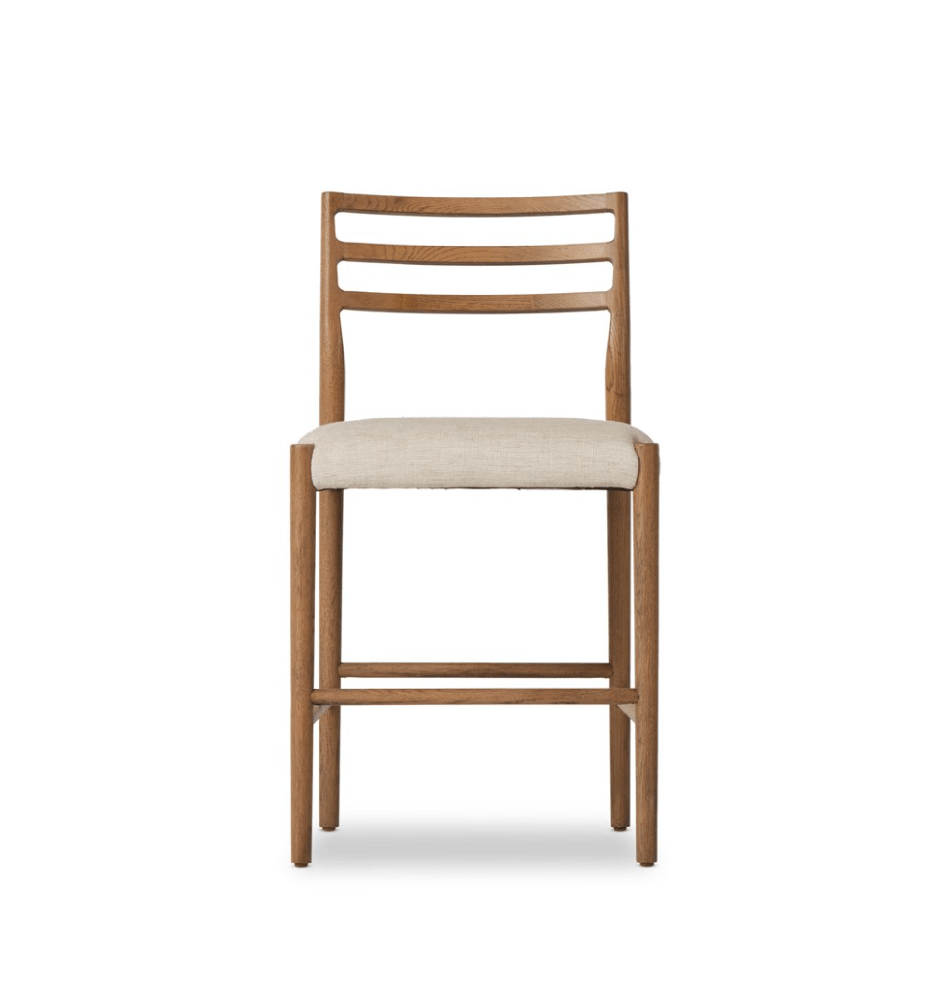 The classic ladderback chair, reimagined. Smoked oak frames a squared cotton- and linen-blend seat, bringing comfort and style to the counter.