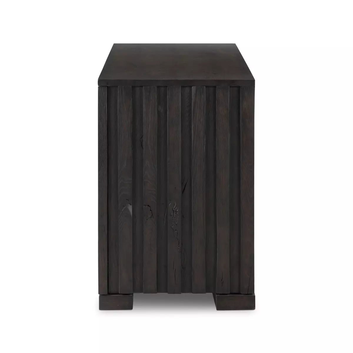 Made from reclaimed French oak and finished in a rich espresso, a spacious sideboard features heavy reeding, for a linear look reflective of midcentury inspiration. Fully finished interior. Designed in partnership with longtime Four Hands collaborator Thomas Bina and Brazilian designer Ronald Sasson.
