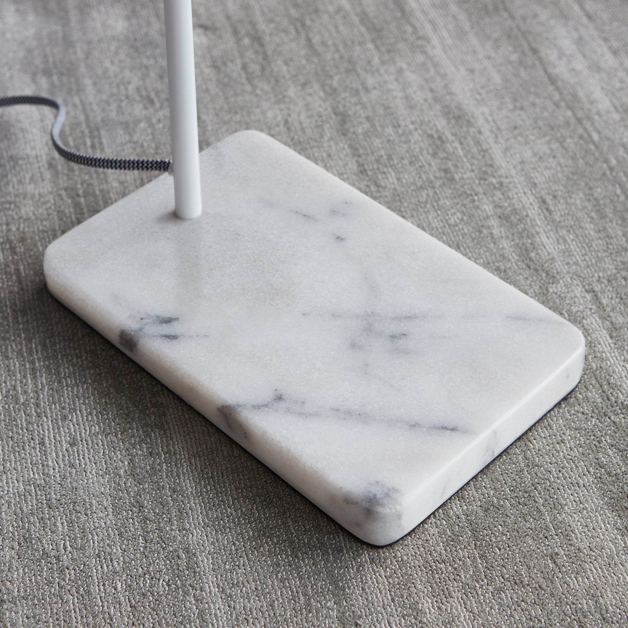 Illuminate your workspace or bedside with the Tandem Table Lamp—a sleek fusion of industrial design and everyday functionality. Available in black or white powder-coated finishes, this lamp features dual adjustable heads for targeted lighting, making it ideal for reading, working, or relaxing. A coordinating marble base adds a refined touch, while the convenient hand switch ensures effortless control. Compact yet impactful, Tandem brings brilliance and style to any surface.