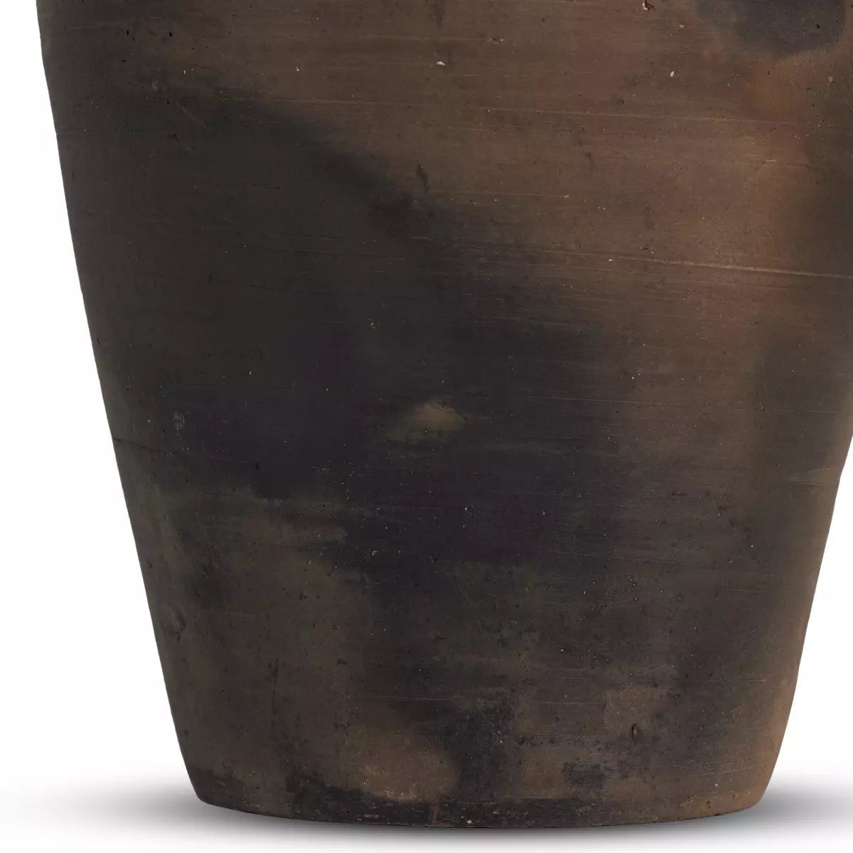 Style this decorative vase made of aged black ceramic in a wide range of places for an antiqued, cultural look, from an entryway table to a bookshelf. Not water-tight – a liner is required for filling the vase with water.