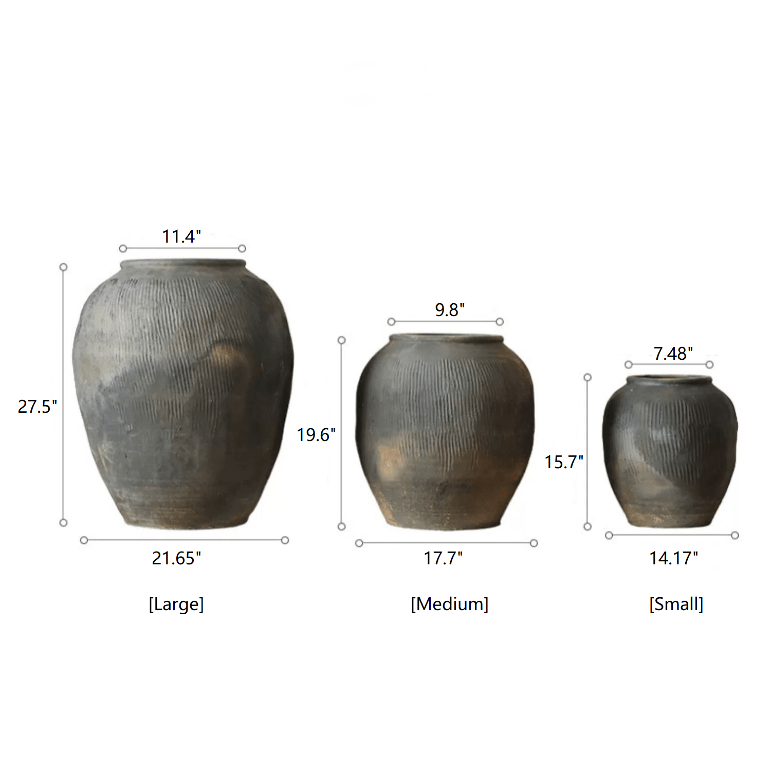 Small 7.48" D Top X 14.17" D Bottom X 15.7" H