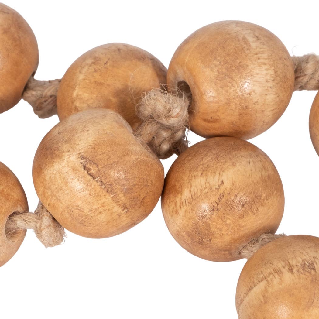 HANDCRAFTED WITH JUTE TASSEL - Designed with durable jute and finished with soft tassels, this wood bead garland brings an artisanal touch to your decor. The strong, flexible cord ensures long-lasting quality, making it a timeless decorative piece.