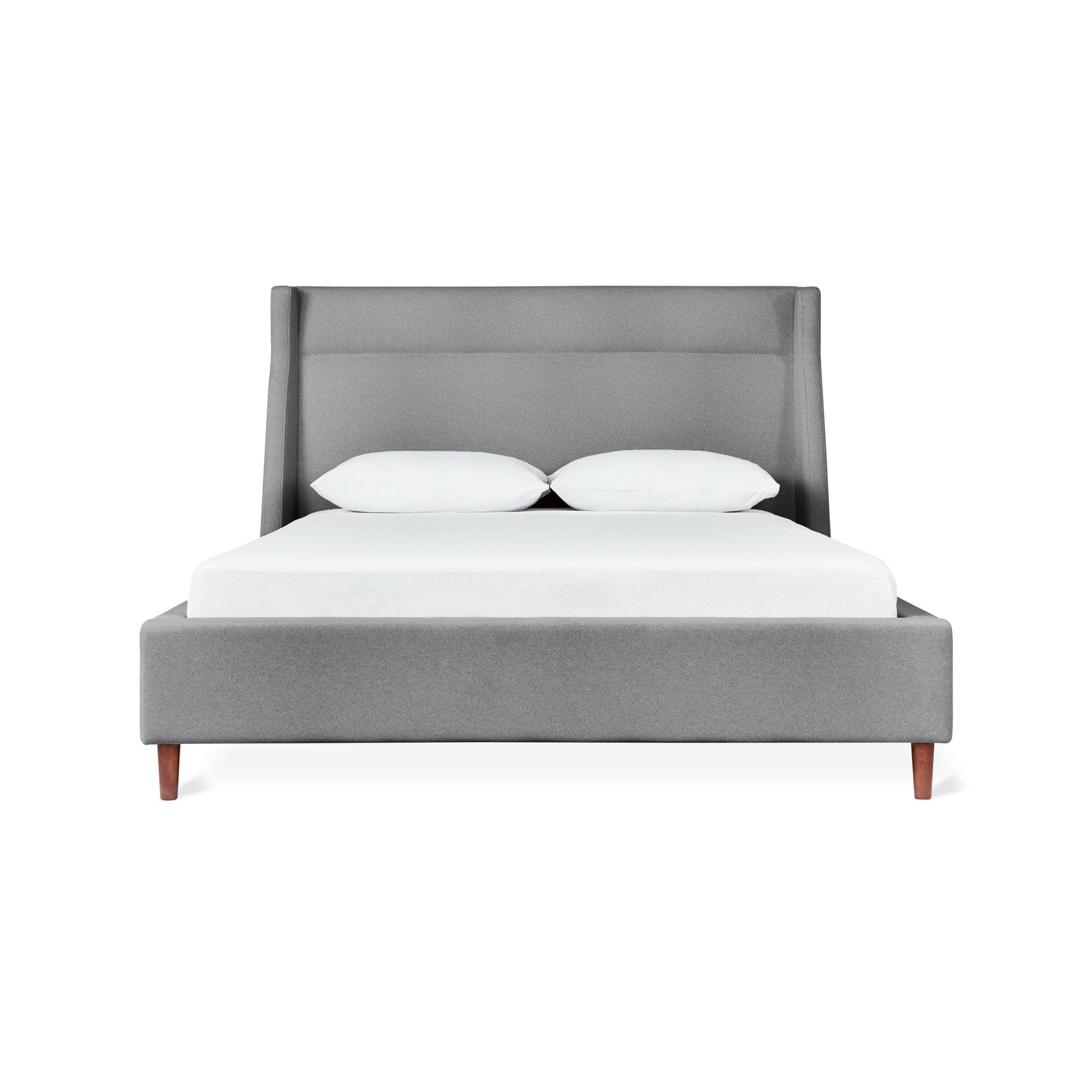 The Carmichael Bed by Gus* Modern masterfully blends classic charm with contemporary design. Featuring a fully upholstered headboard, footboard, and side rails, this bed offers both comfort and sophistication. Its clean-lined silhouette is enhanced by elegant, tapered solid wood legs finished in a warm, water-based tone. The built-in mattress suspension system with a reinforced steel frame and plywood slats eliminates the need for a box spring. Crafted using FSC®-Certified hardwood and engineered wood, the Carmichael Bed delivers a sustainable and stylish sleep solution for modern interiors.