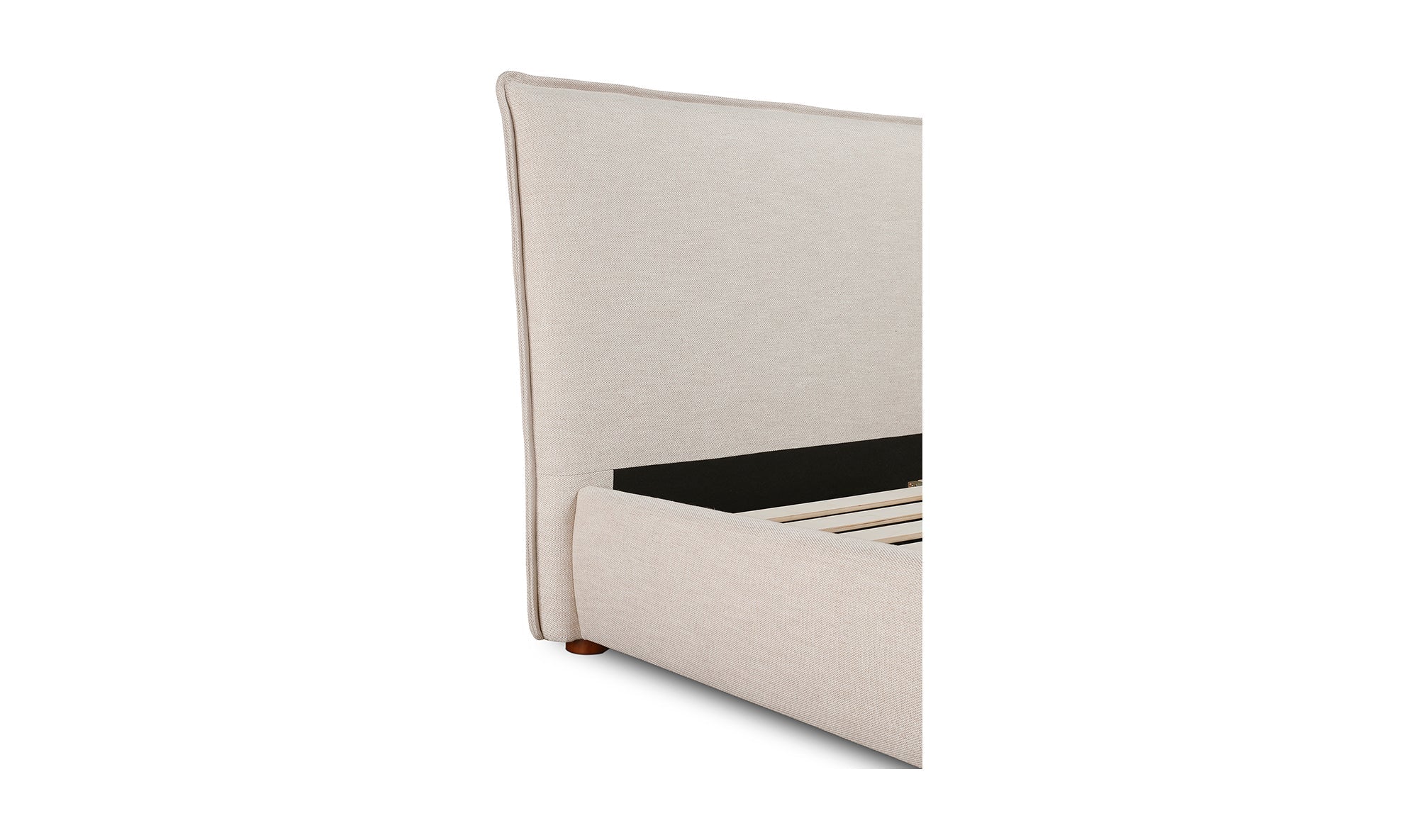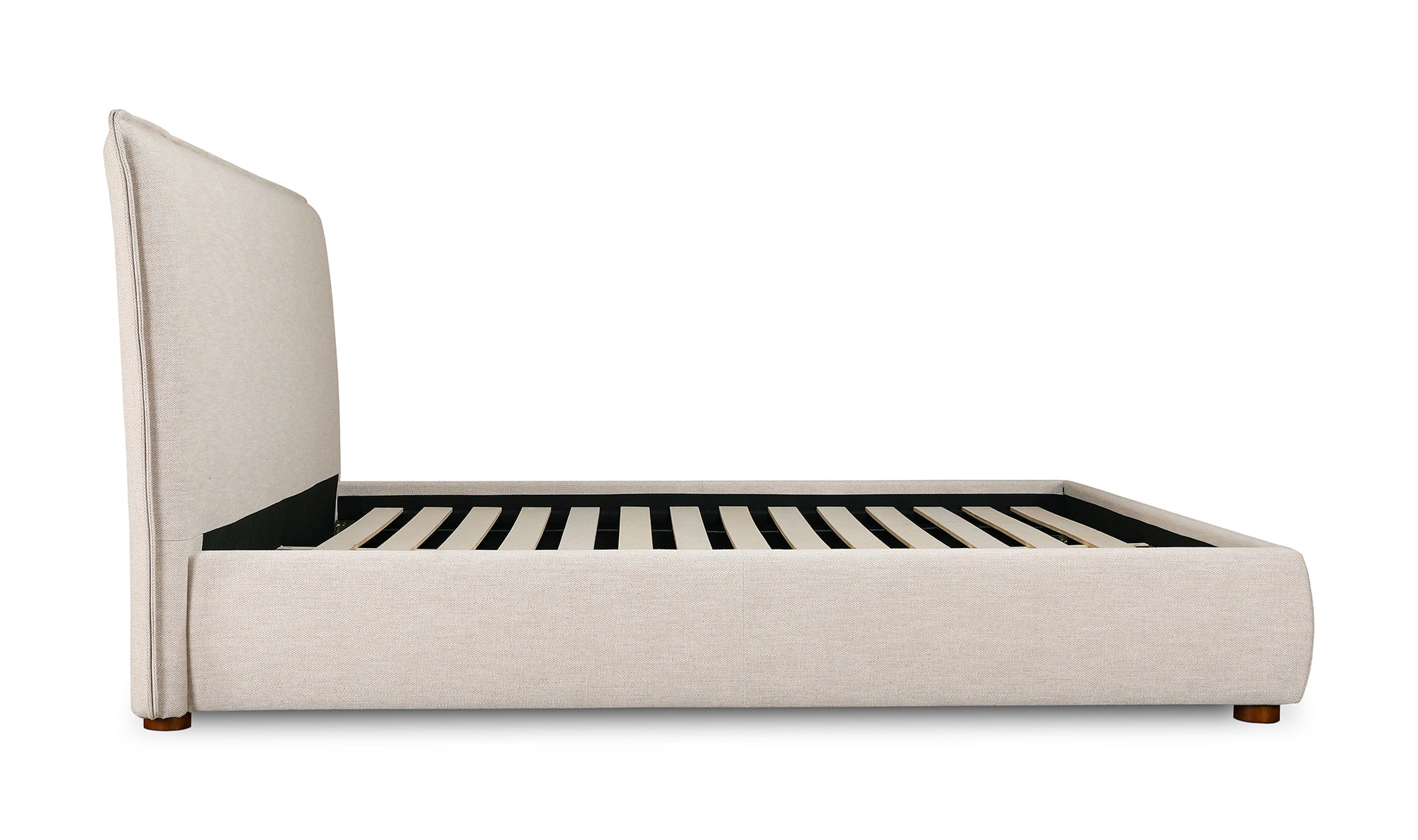 The Luzon king bed is a luxurious haven upholstered in a sumptuous linen-blend fabric. Its padded headboard and robust frame are crafted from a solid pine-poplar mix, offering both comfort and lasting appeal with its flanged edges. The bed's timeless design and neutral hues exude a classic, utilitarian aesthetic that seamlessly integrates into any bedroom retreat - serene elegance in comfort and sophistication.
