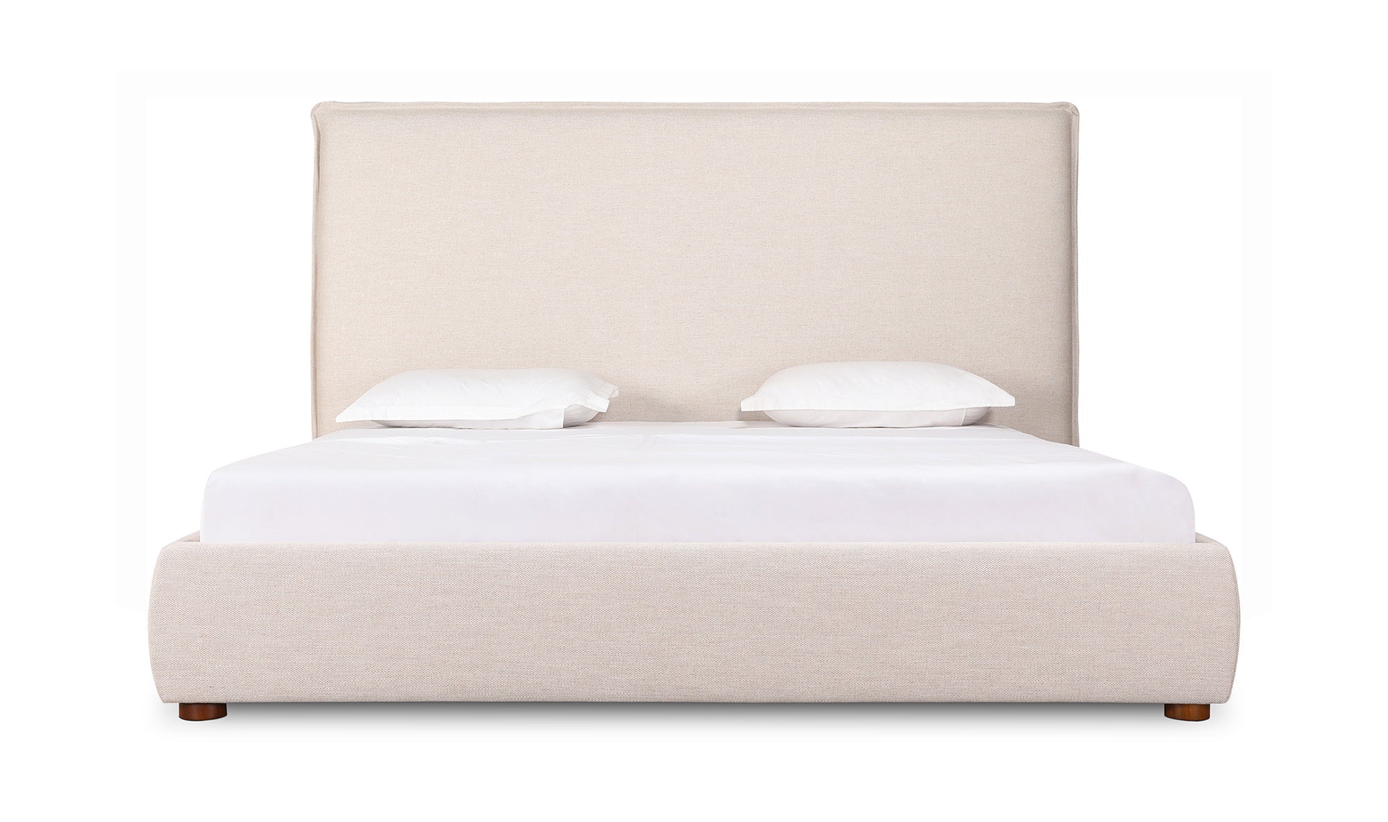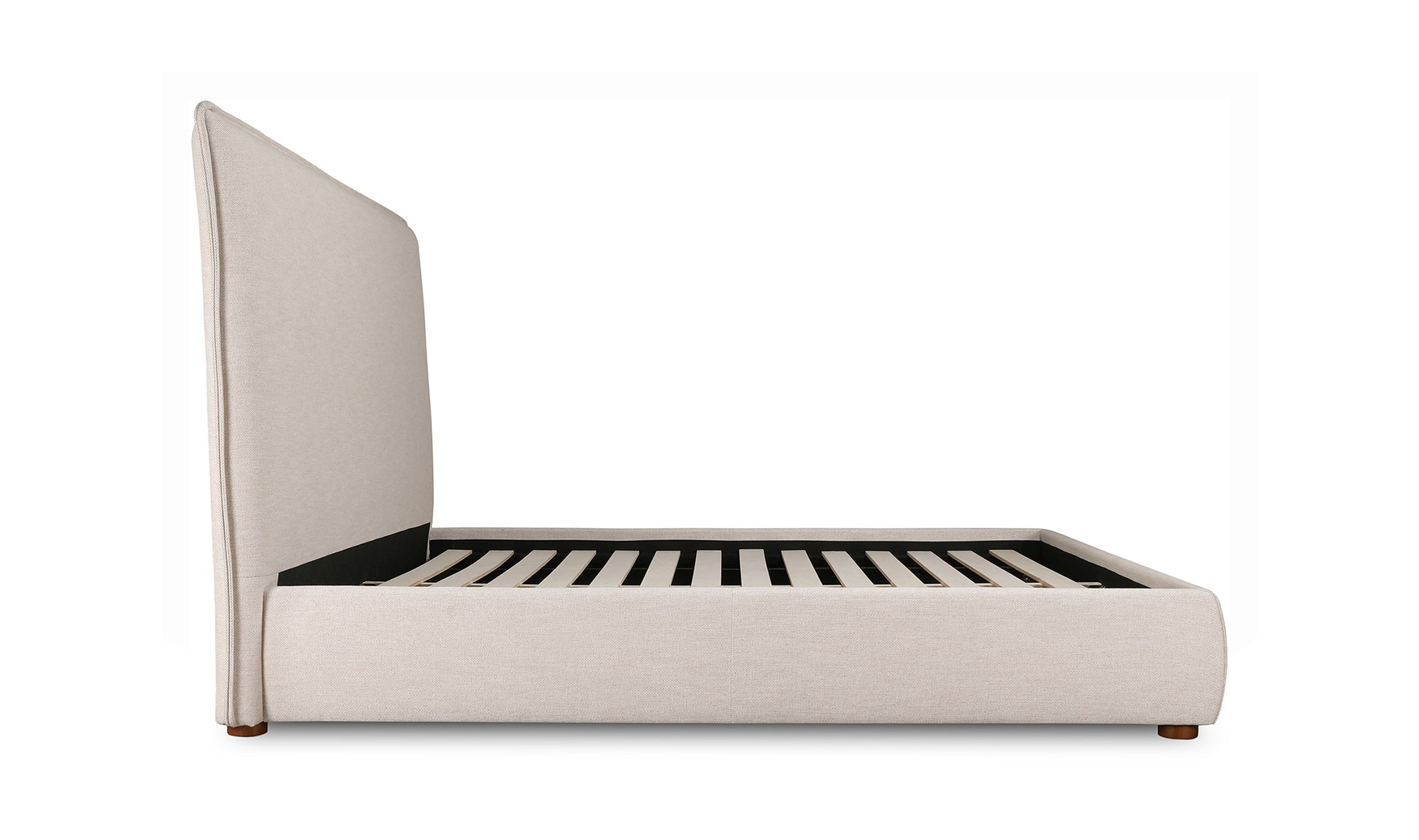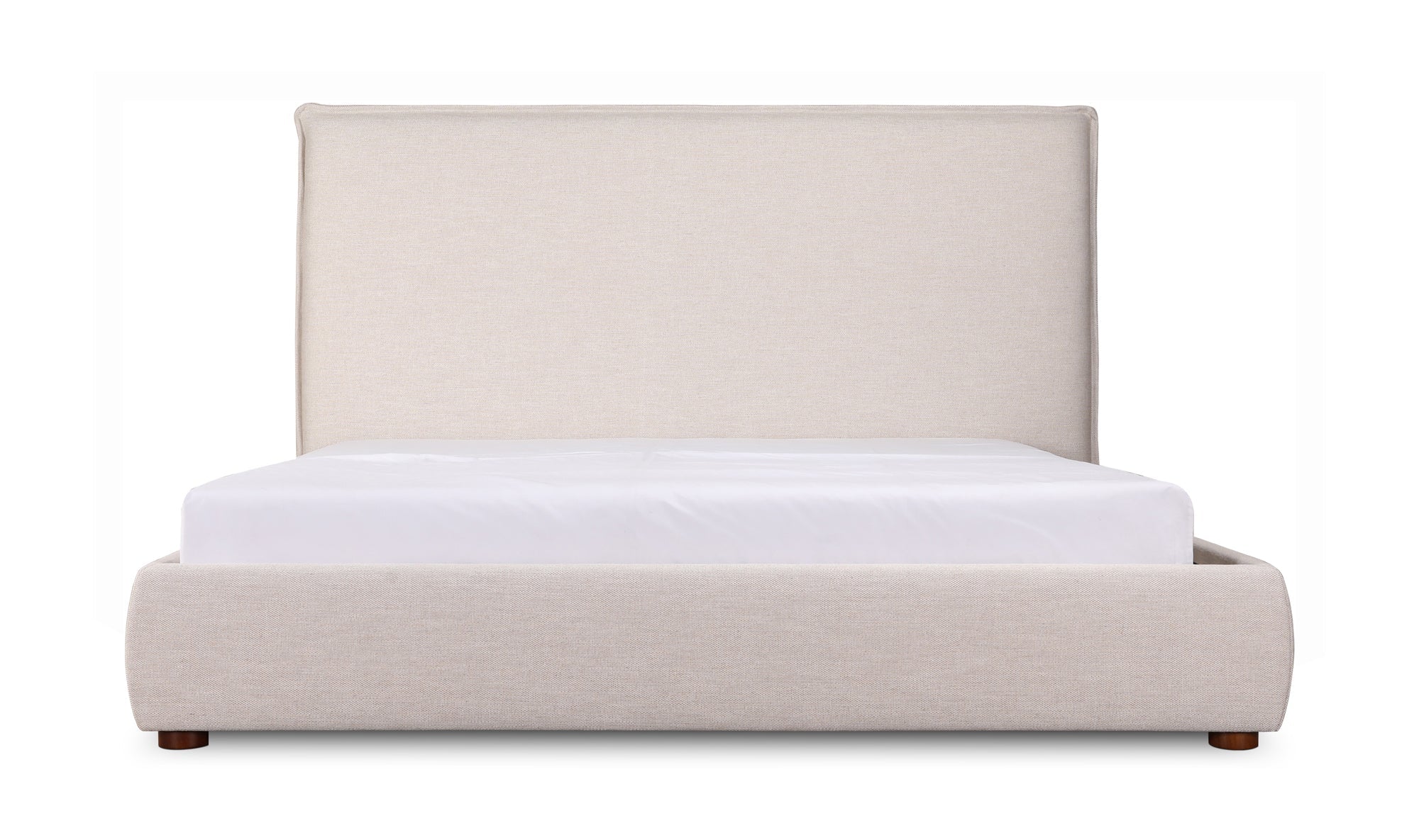 Upholstered from a soft, linen blend fabric, the Luzon bed is relaxed and welcoming. Its padded tall headboard and solid pine and engineered wood frame make it comfy and reliable, while its timeless design and neutral tone showcase a classic, practical look.