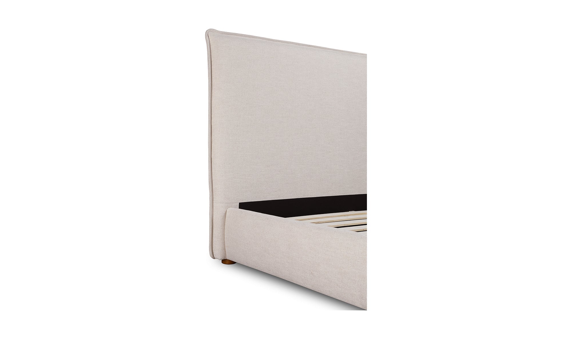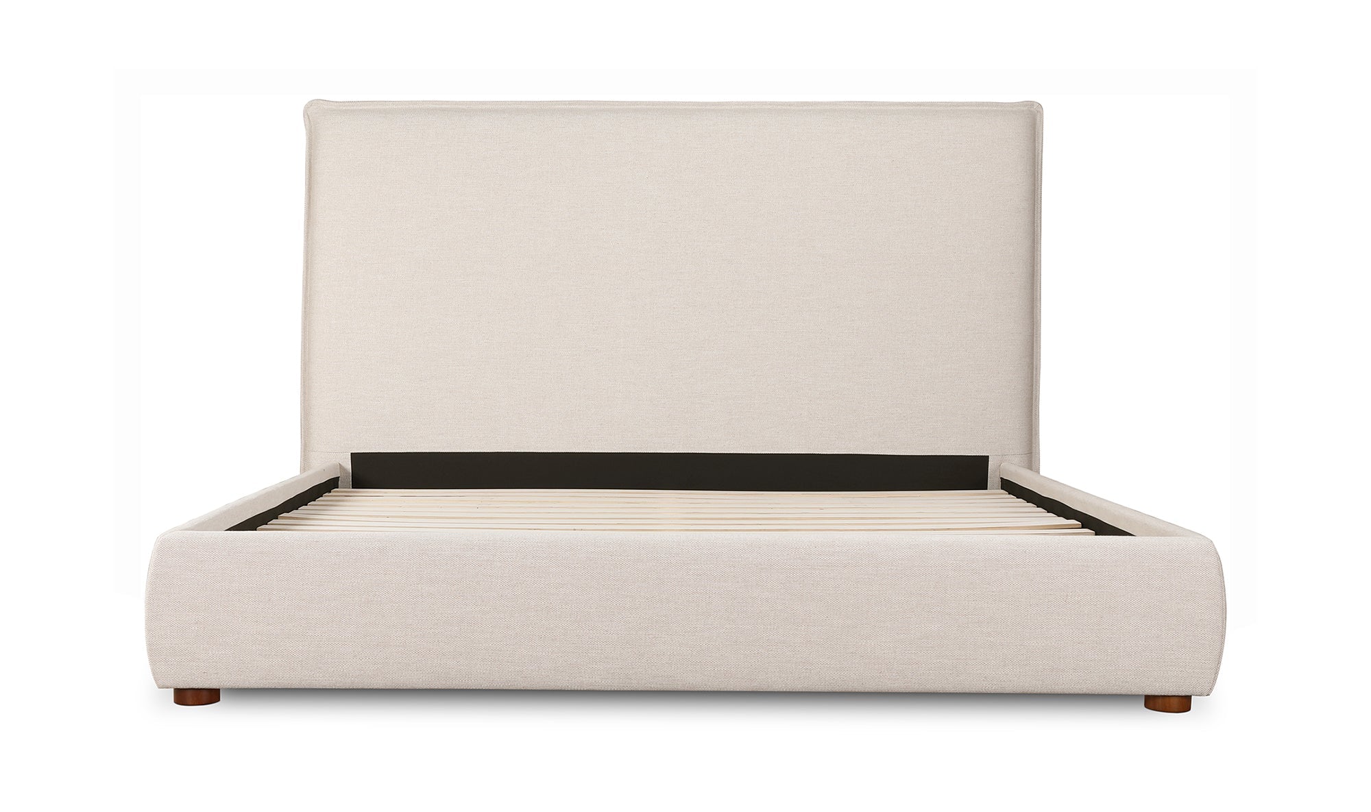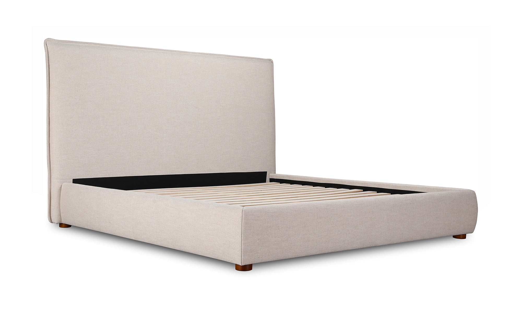 Upholstered from a soft, linen blend fabric, the Luzon bed is relaxed and welcoming. Its padded tall headboard and solid pine and engineered wood frame make it comfy and reliable, while its timeless design and neutral tone showcase a classic, practical look.