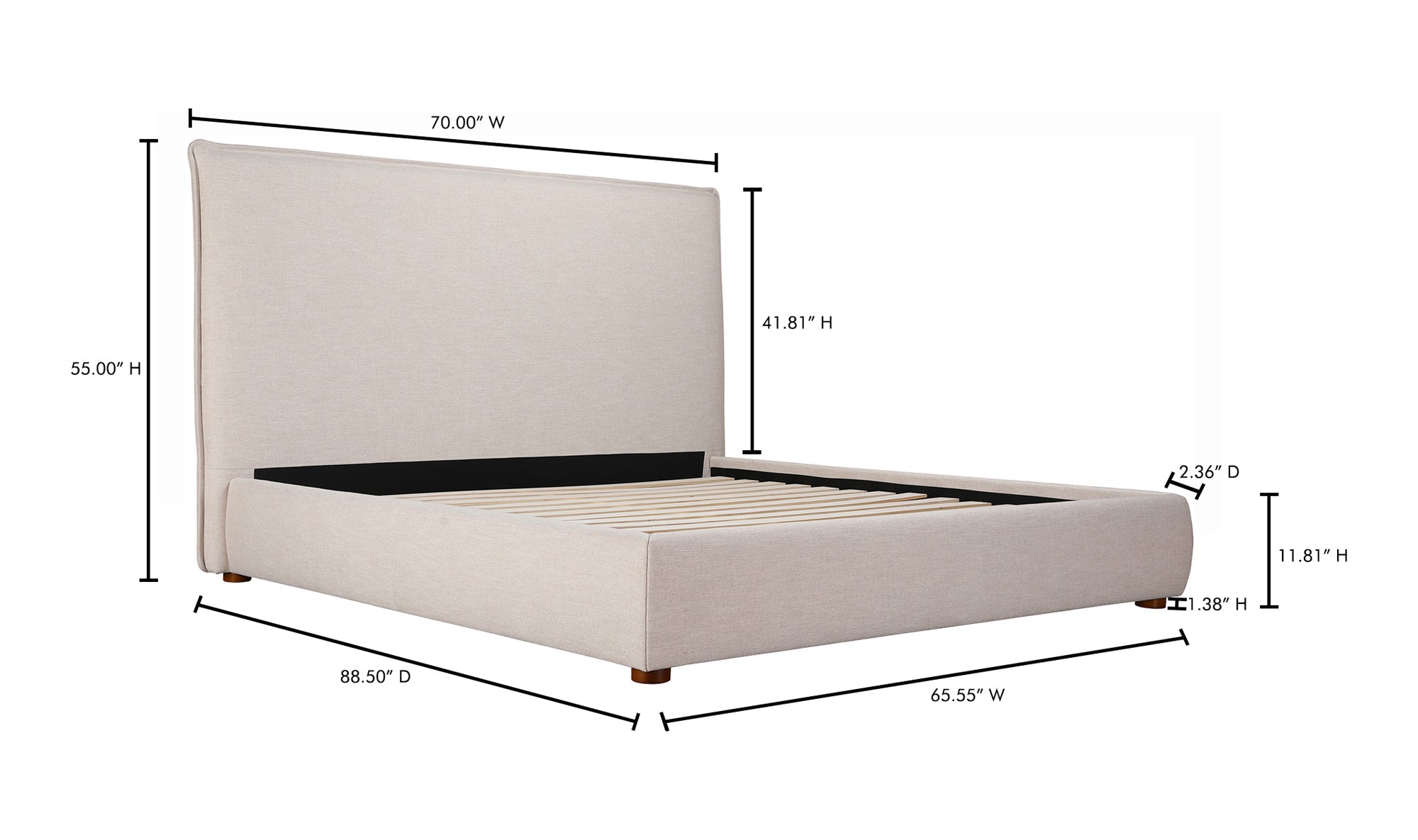 • Overall Dimensions: 70.0” W × 88.5” D × 55.0” H
