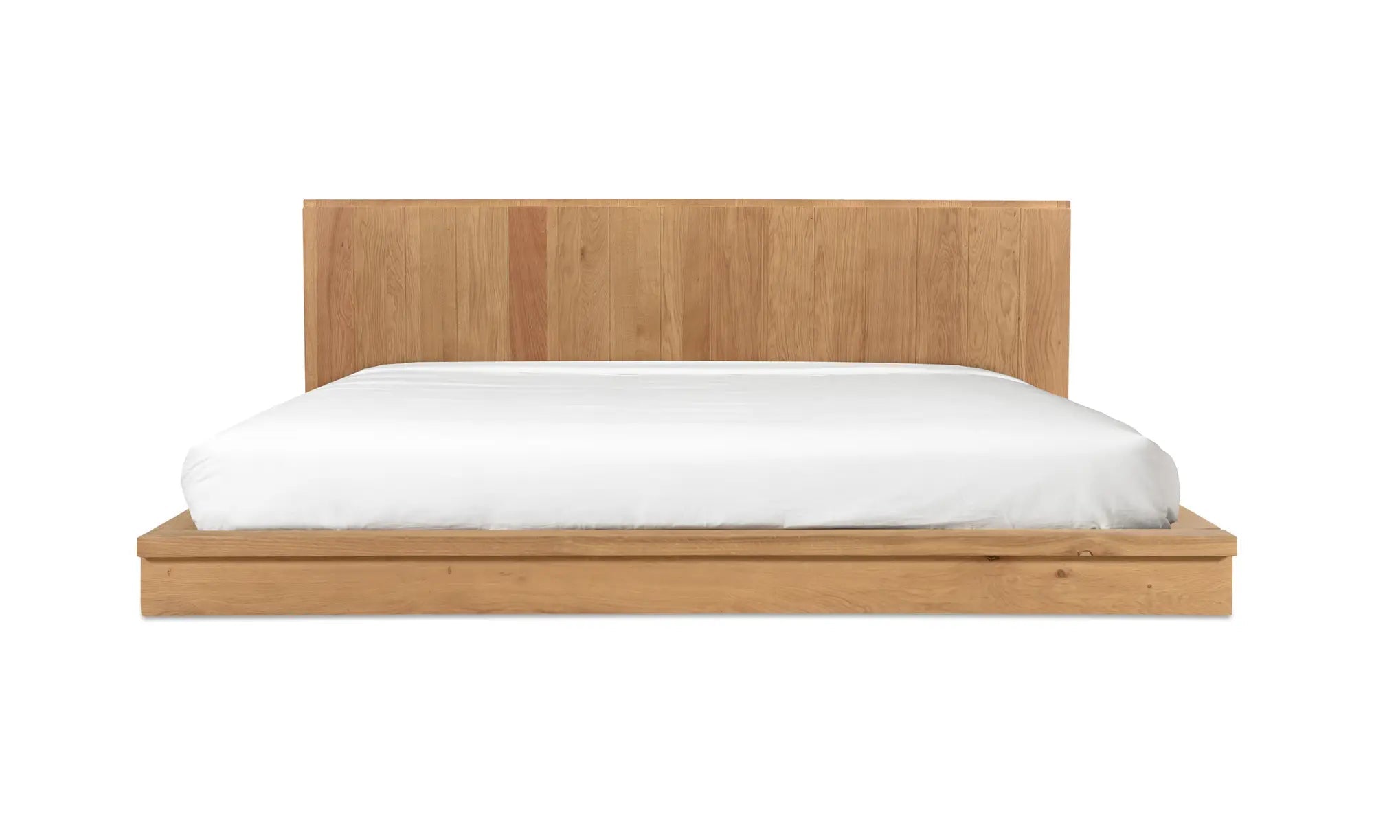 With naturally finished solid oak, the Plank collection shows off all the organic appeal of the trees it’s made from. A gorgeous display for the wood, the Plank bed’s expansive headboard revels in the unique woodgrains and whorls. Available in a queen and king, this bed will bring all-natural vibes to your bedroom. Pair it with the Plank nightstand for a complete set.