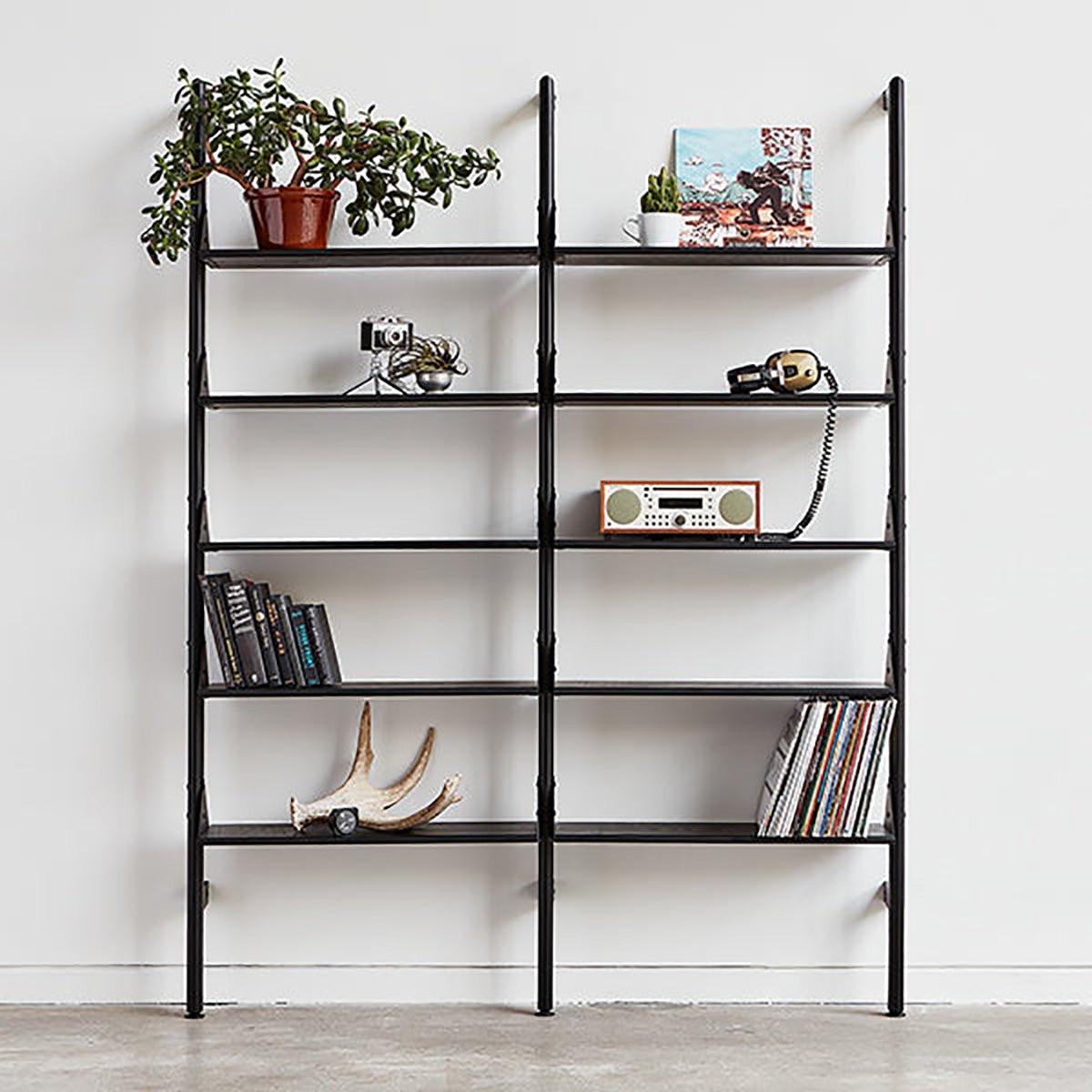 - Finish: Matte black uprights with natural wood shelves (customizable)