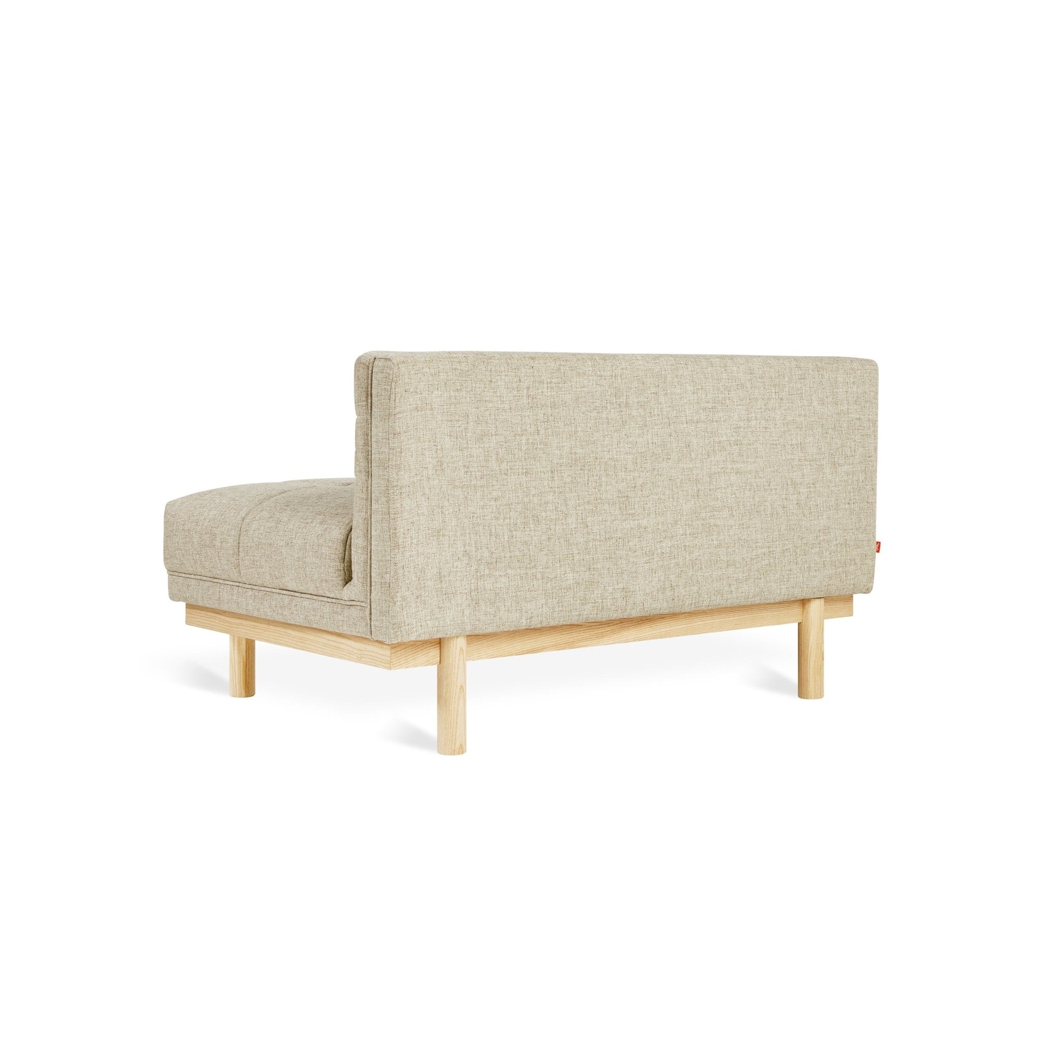 The Mulholland Lounge brings mid-century poise and modern refinement into a compact lounge format. Designed with a tuxedo-style frame, it features elegant blind tufting on the seat, back, and arms for a structured yet comfortable aesthetic. Perfect for smaller spaces, the Mulholland Lounge works beautifully as standalone seating or can be paired with the Mulholland Sofa to form a cohesive bi-sectional layout. The eco-conscious solid ash wood perimeter base with notched dowel legs adds a touch of organic warmth, while the kiln-dried FSC®-Certified hardwood frame ensures structural integrity. Stylish, sustainable, and compact, the Mulholland Lounge is a versatile addition to living rooms, bedrooms, or entryways.