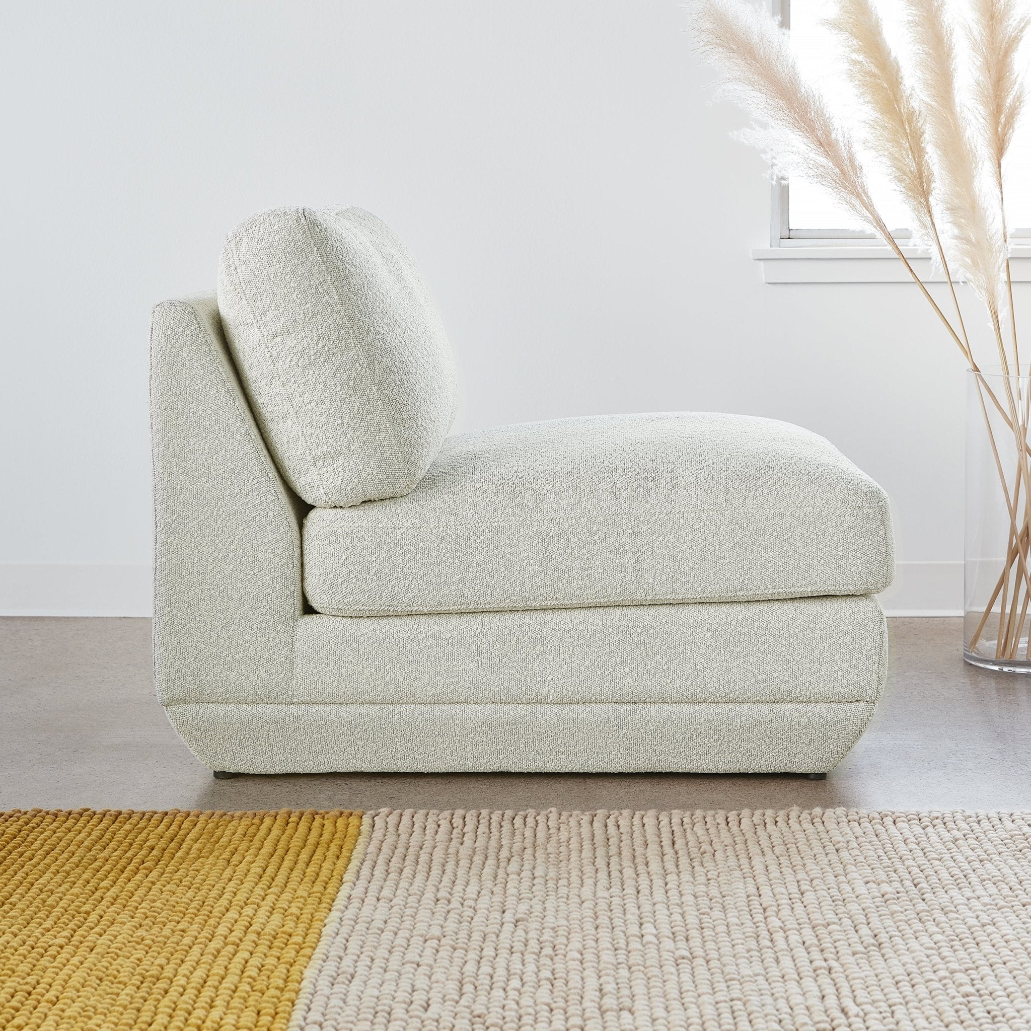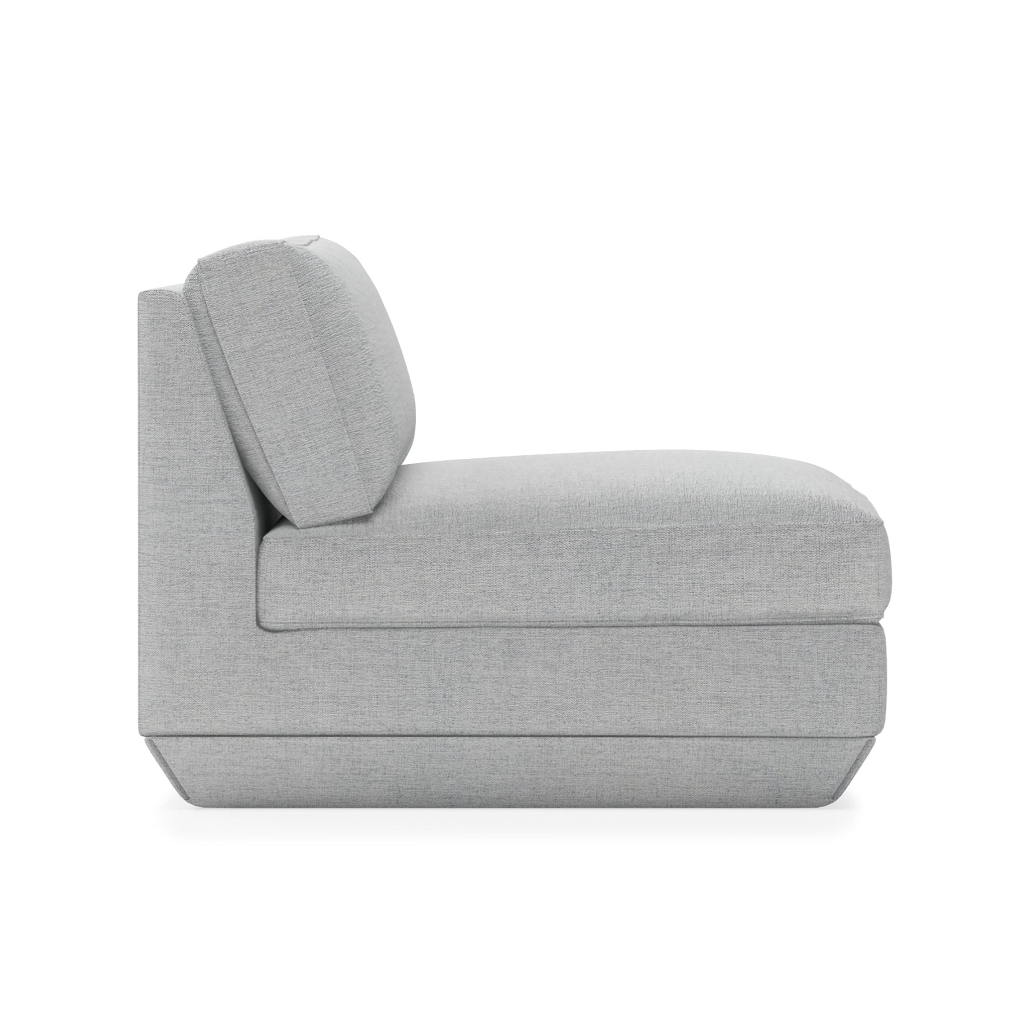 Elevate your living space with the Podium Modular Armless Chair, a versatile piece from the Podium Collection designed for modern comfort and timeless style. Inspired by 1970s Modernism, this armless chair features a low-profile silhouette, plush cushions, and a subtly angled chamfered base. Crafted with FSC®-Certified hardwood and filled with ultra-soft, long-strand fiber made from recycled plastic bottles, it offers the luxurious feel of down while supporting sustainable living. Combine with other Podium components to create a custom seating arrangement that evolves with your lifestyle.