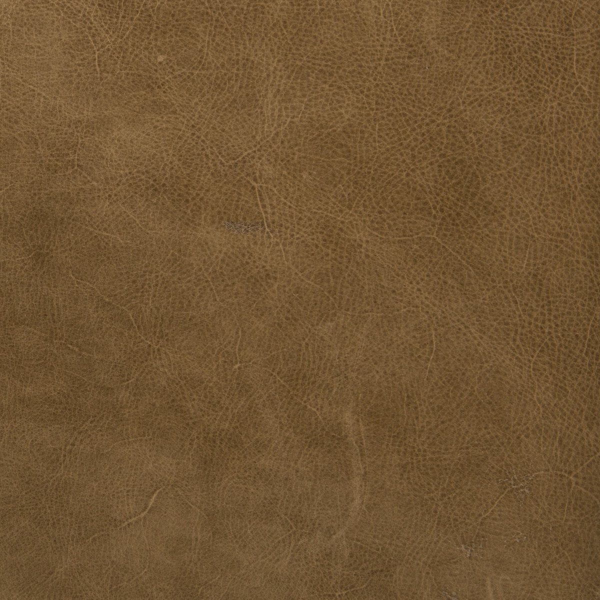 Invitingly curved seat with dramatic horizontal channels is covered in soft, camel-colored top-grain leather. Rich, tonal frame captures alluring negative—and positive—spaces.
