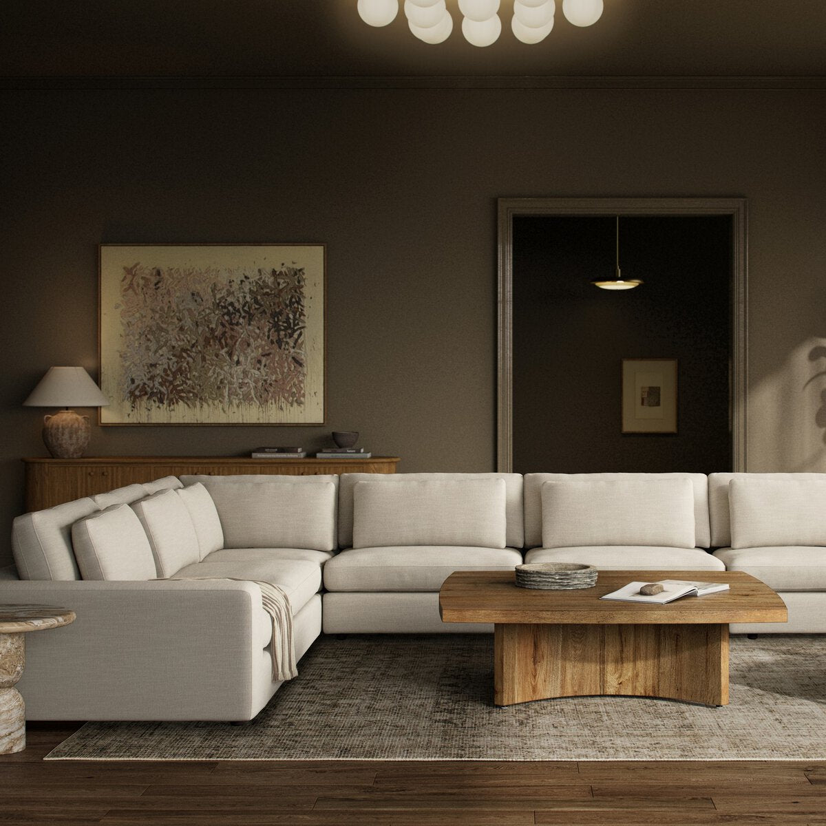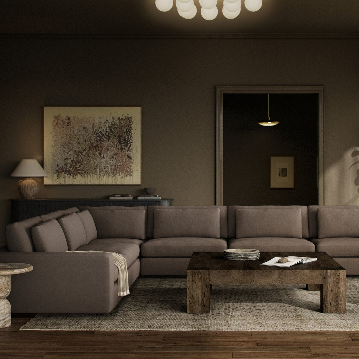 Sink into the cozy comfort of the Monroe 6-Piece Sectional — your new go-to spot for movie nights, lazy Sundays, and all the laughs in between. This spacious setup invites you to stretch out and relax, while its sleek design adds a splash of fun and style to any room. Perfect for hosting friends or just kicking back solo, the Monroe turns living spaces into happy places.