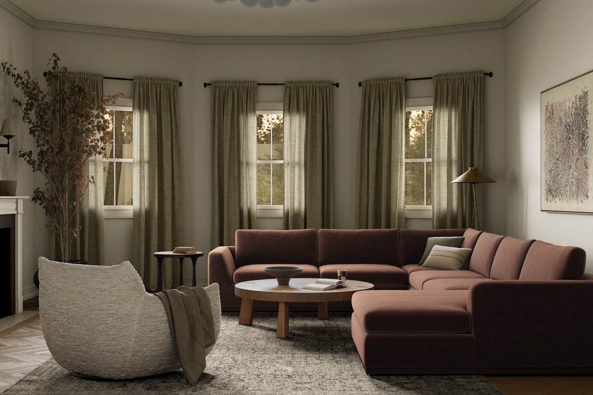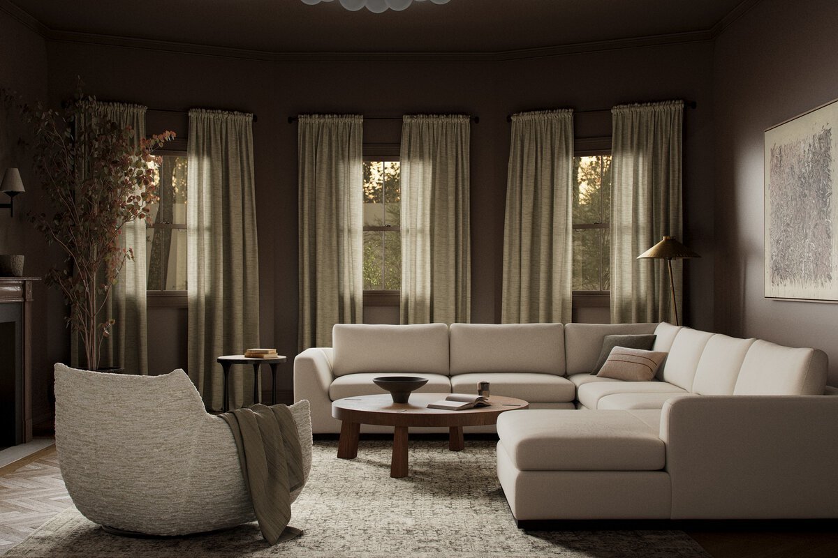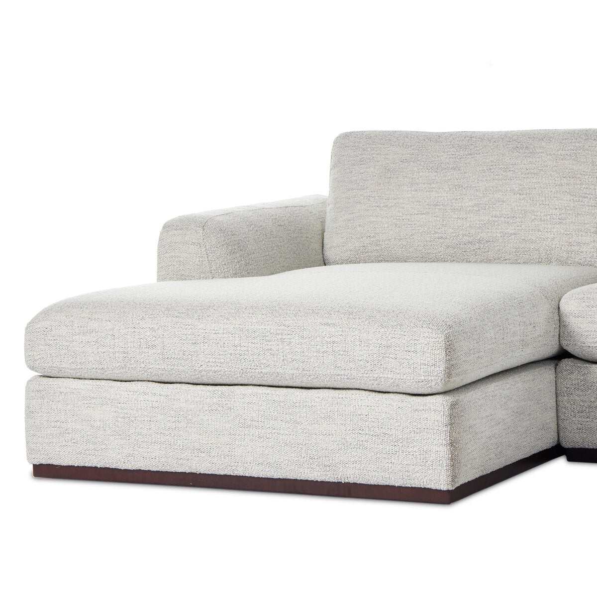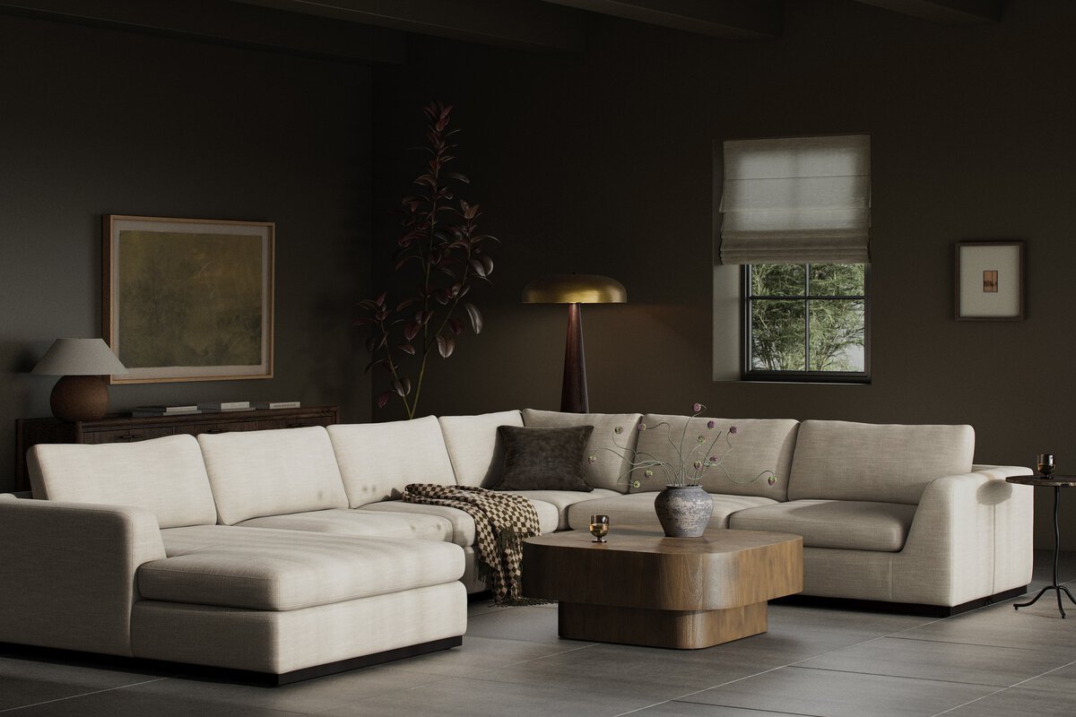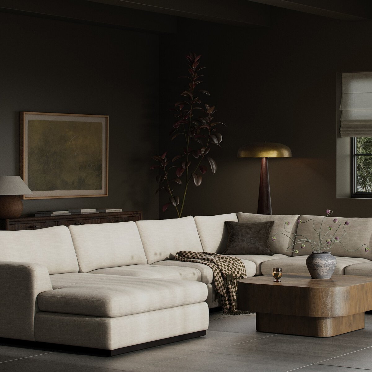 A four-piece sectional is upholstered in Crypton® performance fabric, specially engineered for protection against stains, moisture and odor. Due to the customized nature of made-to-order pieces, no cancellations or returns are accepted.