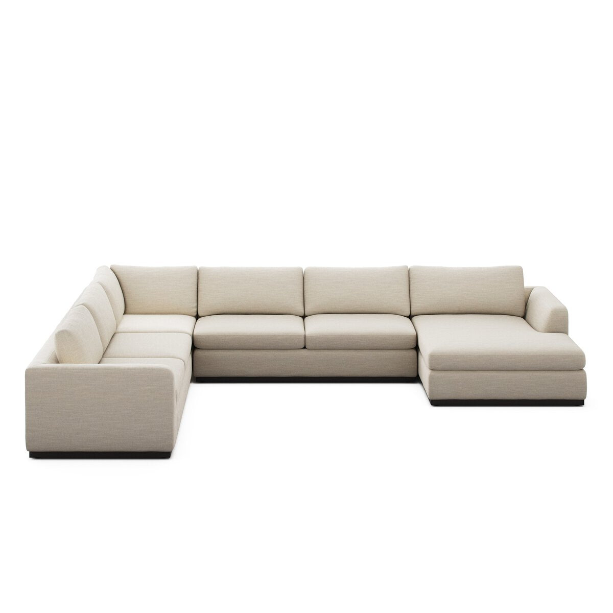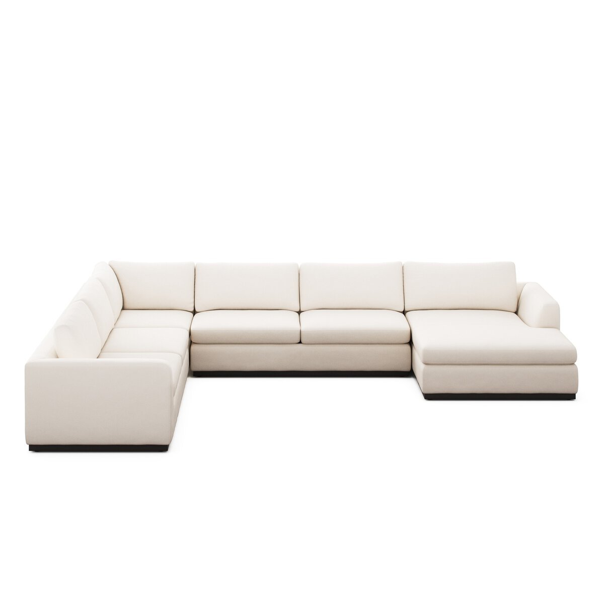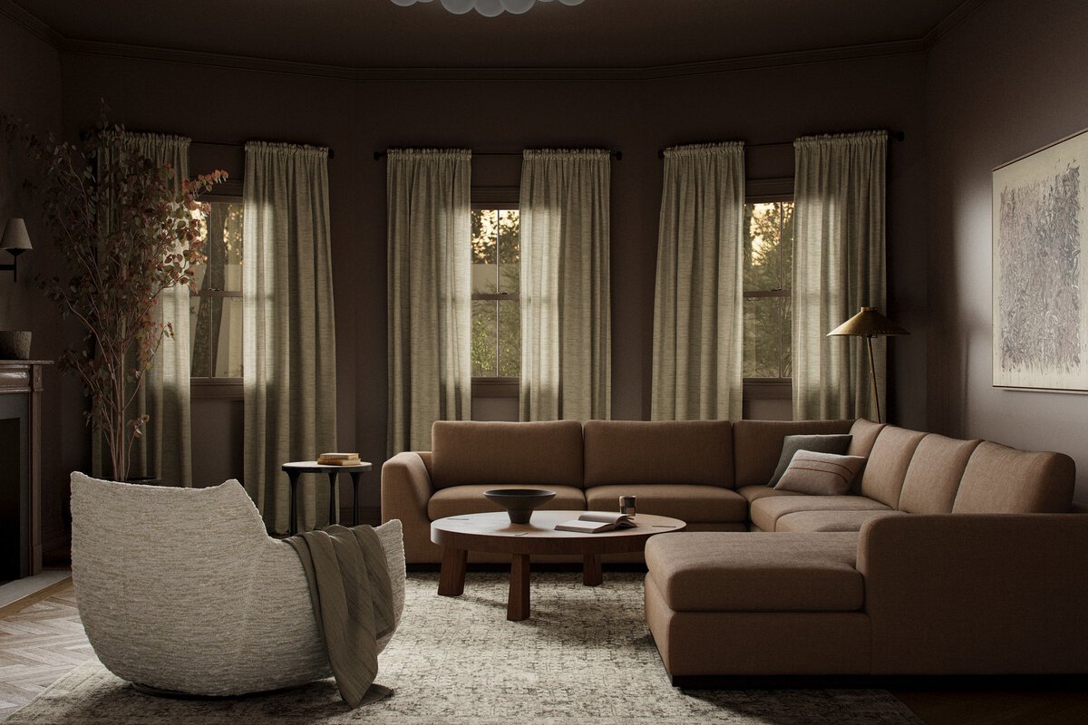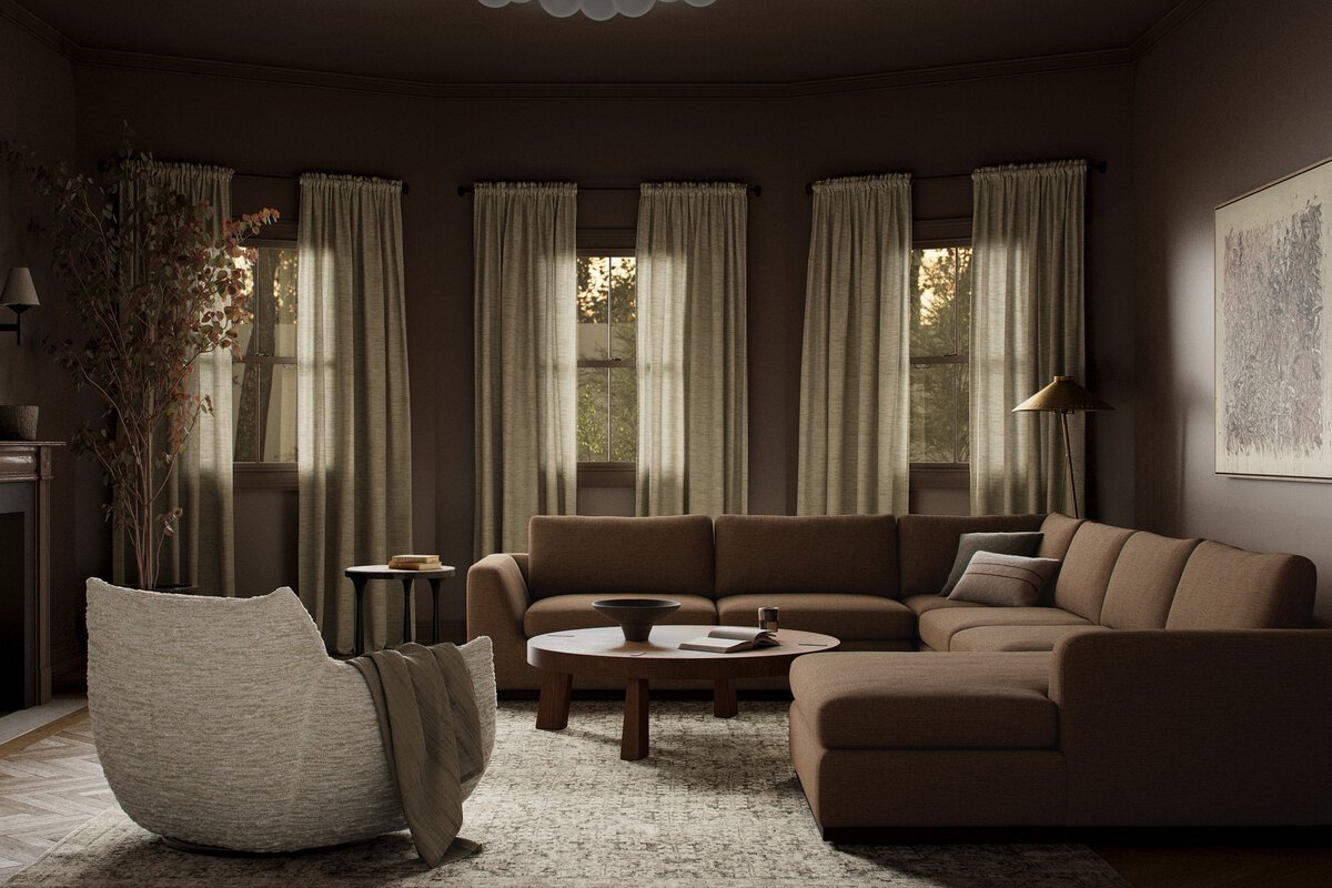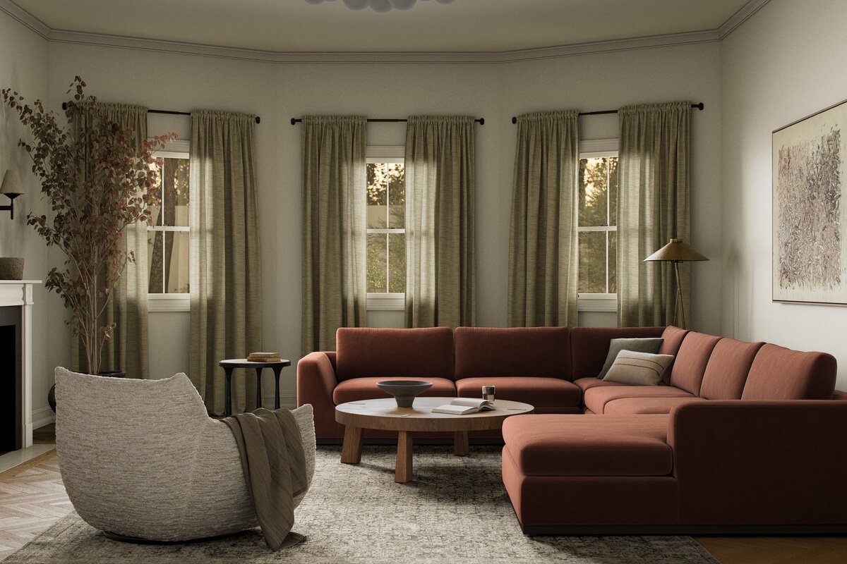 A four-piece sectional is upholstered in Crypton® performance fabric, specially engineered for protection against stains, moisture and odor. Due to the customized nature of made-to-order pieces, no cancellations or returns are accepted.