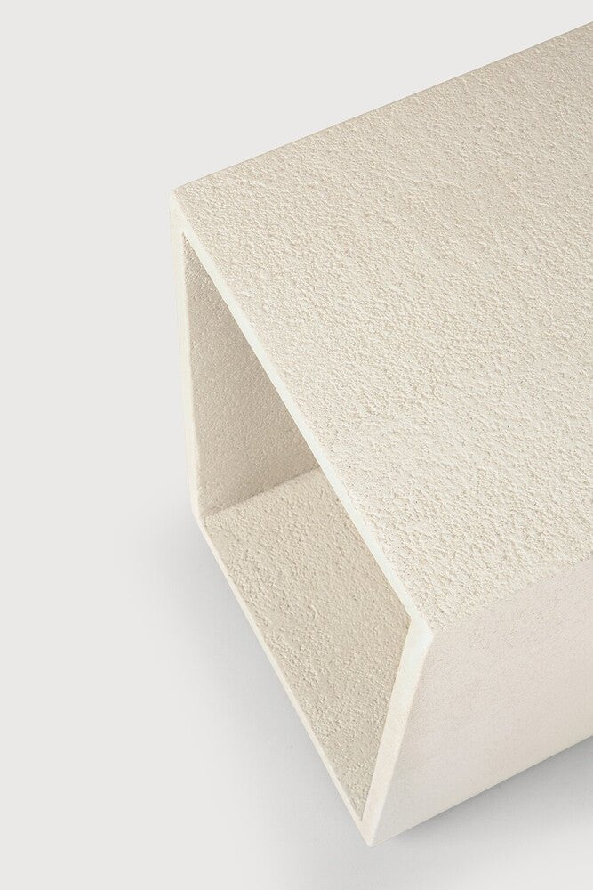 The Elements Bedside Table stands out with its sculpted surface and quiet presence. Made from solid oak and oak veneer, it offers a minimalist profile enriched by hand-carved detail. With an airy open base and versatile size, this nightstand brings subtle texture and organic beauty to modern or transitional spaces.