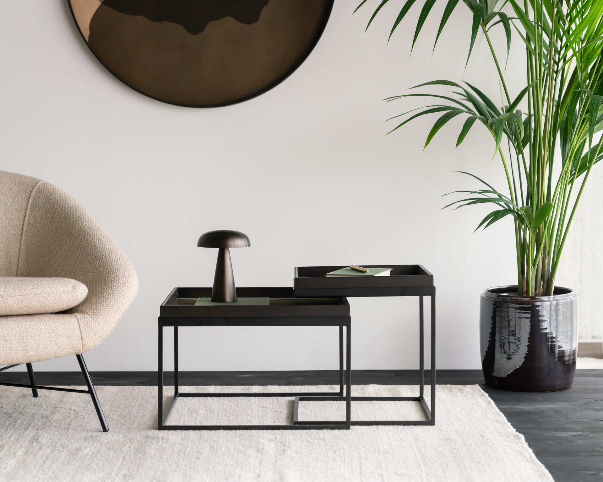 Bring the poetry of nature indoors with the Wabi Sabi Glass Tray in Bronze. Featuring hand-painted and silk-screen printed glass, this round tray evokes misty mountain hues and layered landscapes. Framed in warm wood, it’s ideal for serving, styling, or display. No assembly required; for indoor use only. Each piece is uniquely handcrafted, embracing the beauty of imperfection.