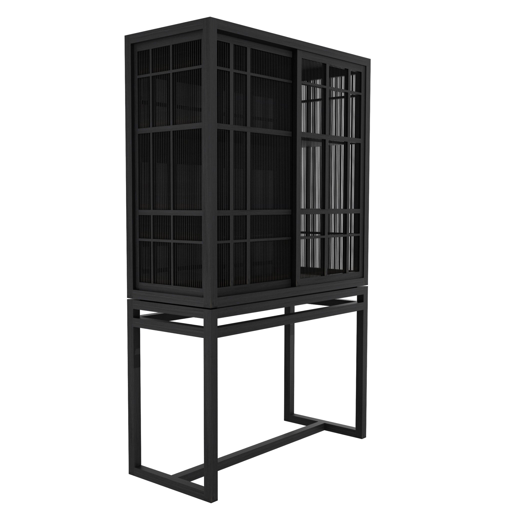 Like a shroud, the large sliding doors with bamboo spokes let light shimmer through. This creates an inequivalent sense of mystery and intrigue. The Burung storage cupboard, by Carlos Baladia, is designed with the personal objects you want to have close in mind. Those special things that do not have to be in the forefront, but you want to know that are there. From souvenirs and collectibles to curiosities.