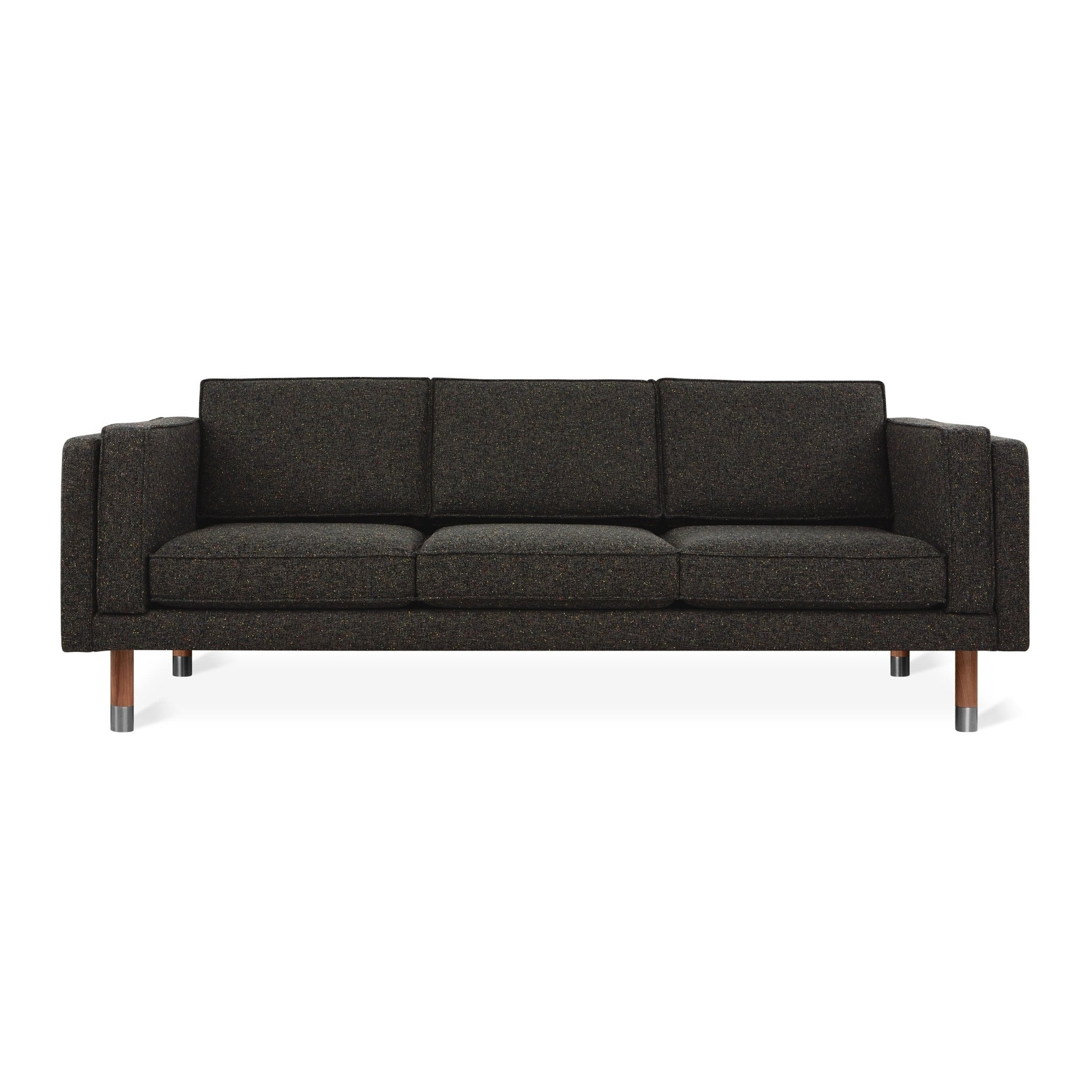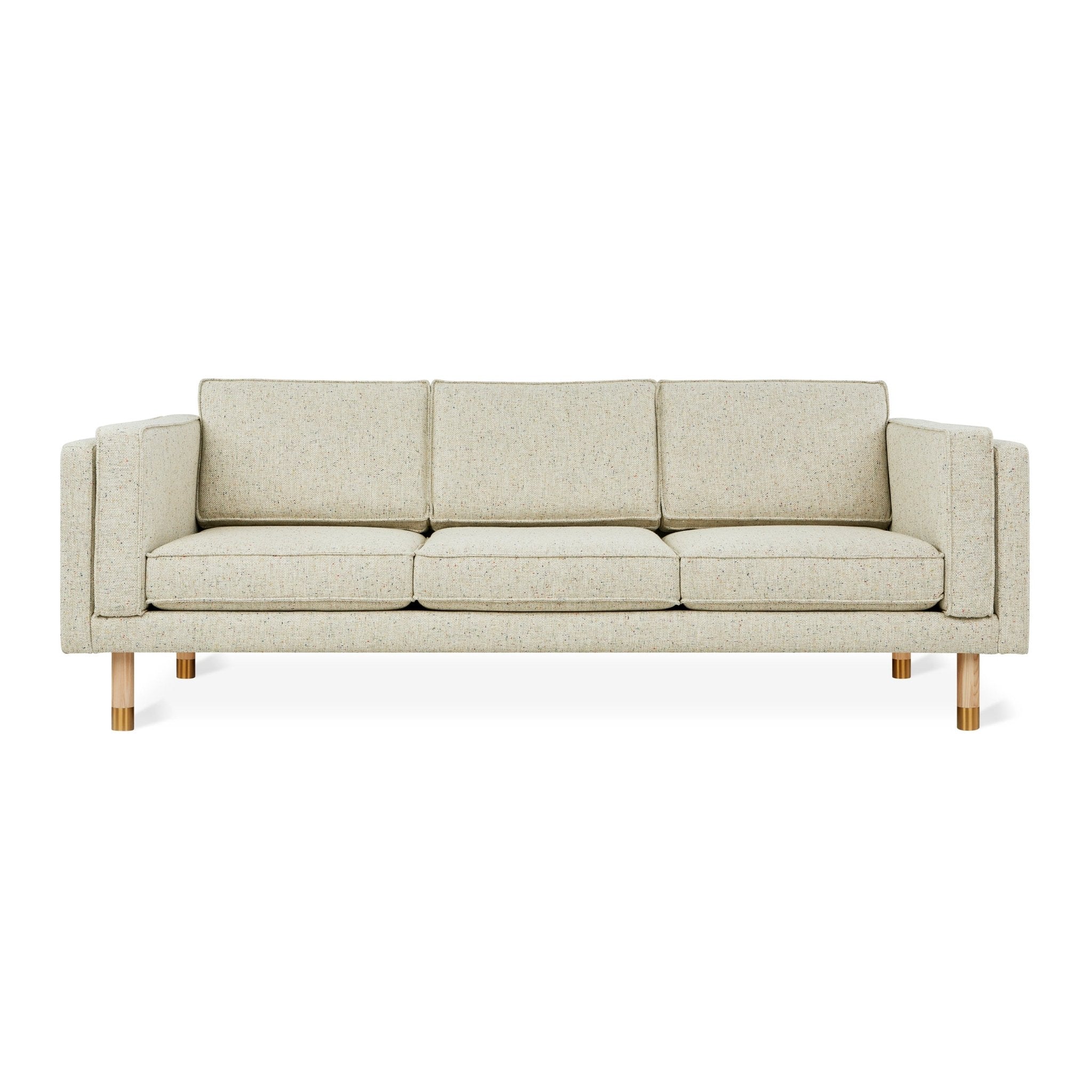 The Augusta Sofa blends classic Modernist structure with fresh Mid-century detailing. This 3-over-3 club sofa features structured, reversible cushions with French seams, a slim platform base, and solid wood legs accented with brass or pewter metal. Crafted with FSC®-Certified kiln-dried hardwood and a steel-reinforced frame, Augusta offers sustainable sophistication and long-lasting comfort. Pair it with the Augusta Bi-Sectional for a cohesive living room statement.