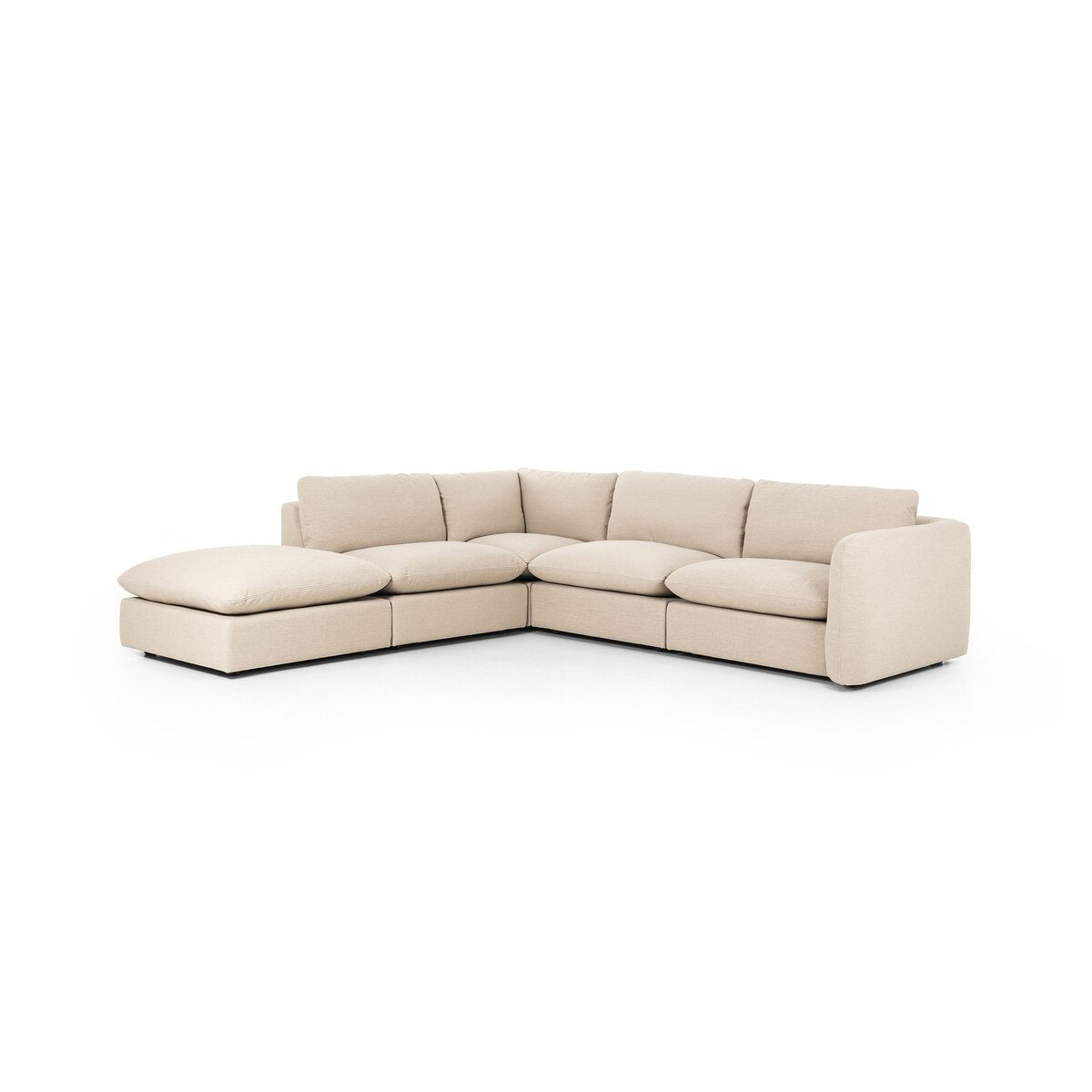 Inflated, pillow-inspired cushioning all around brings cozy comfort to the room. High-performance linen offers the best of both worlds on this plush and welcoming sectional. Inflated arms, feather-fiber blend cushioning, a soft, durable linen fabric and the coordinating ottoman make this spacious sectional a smart solution for the comfort-driven living space.