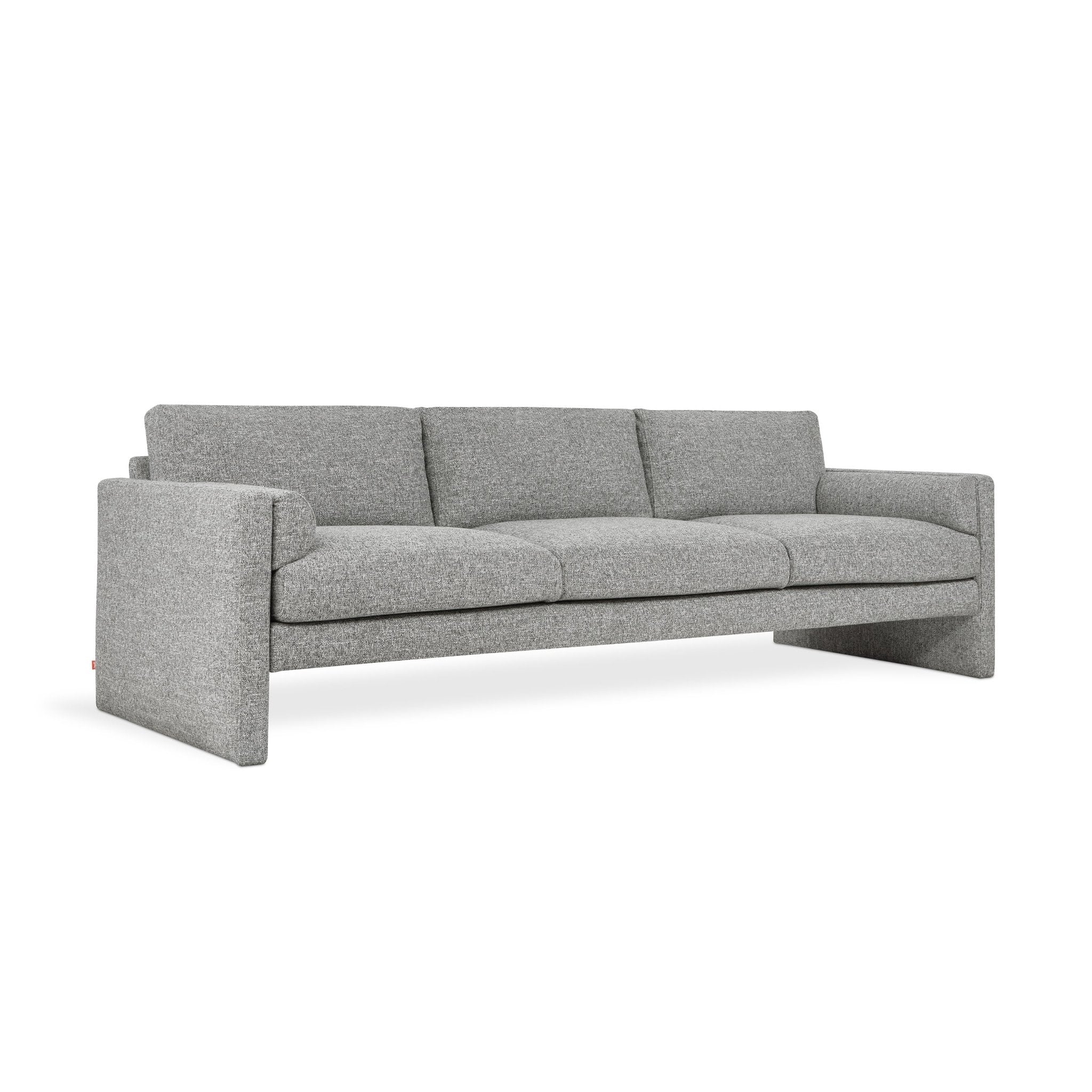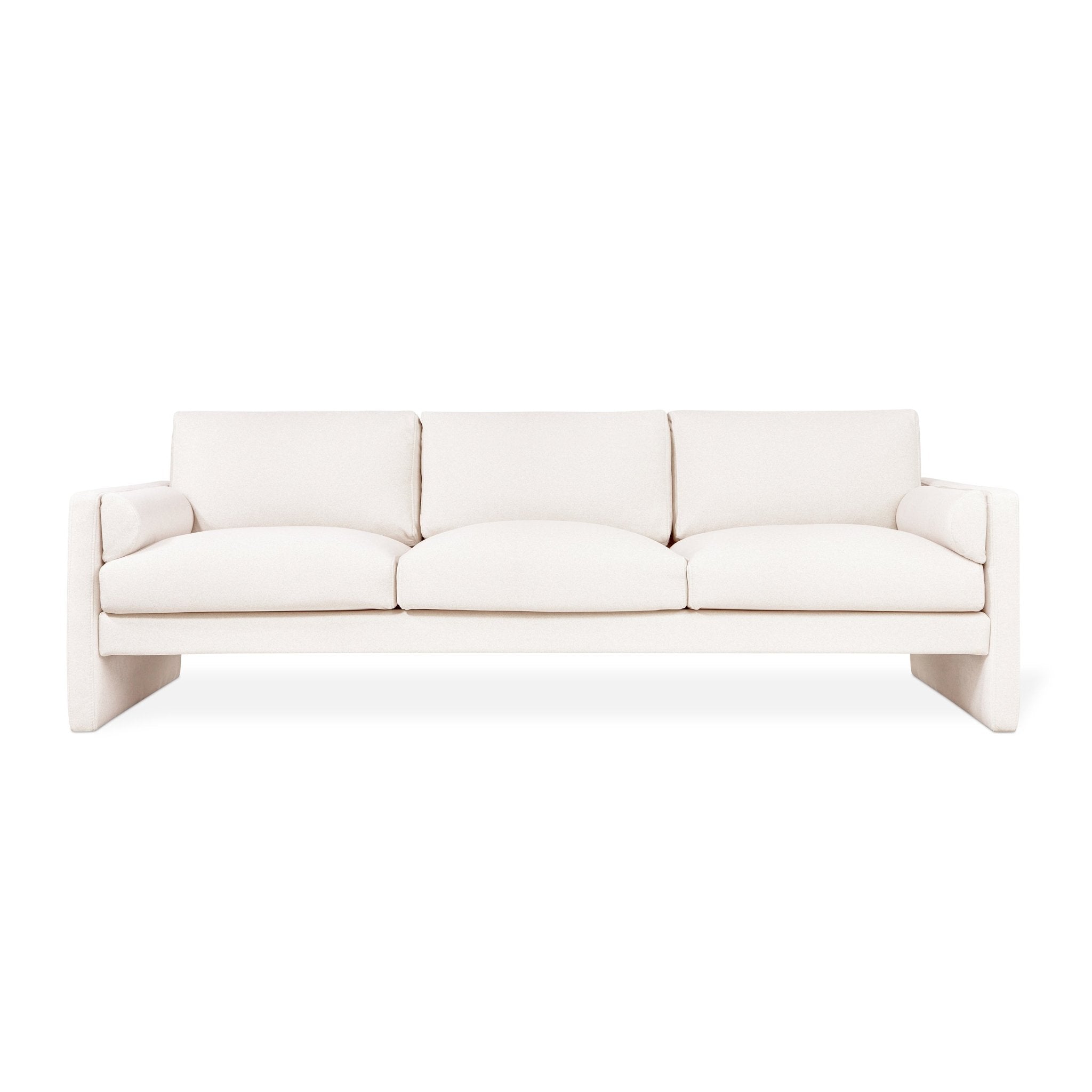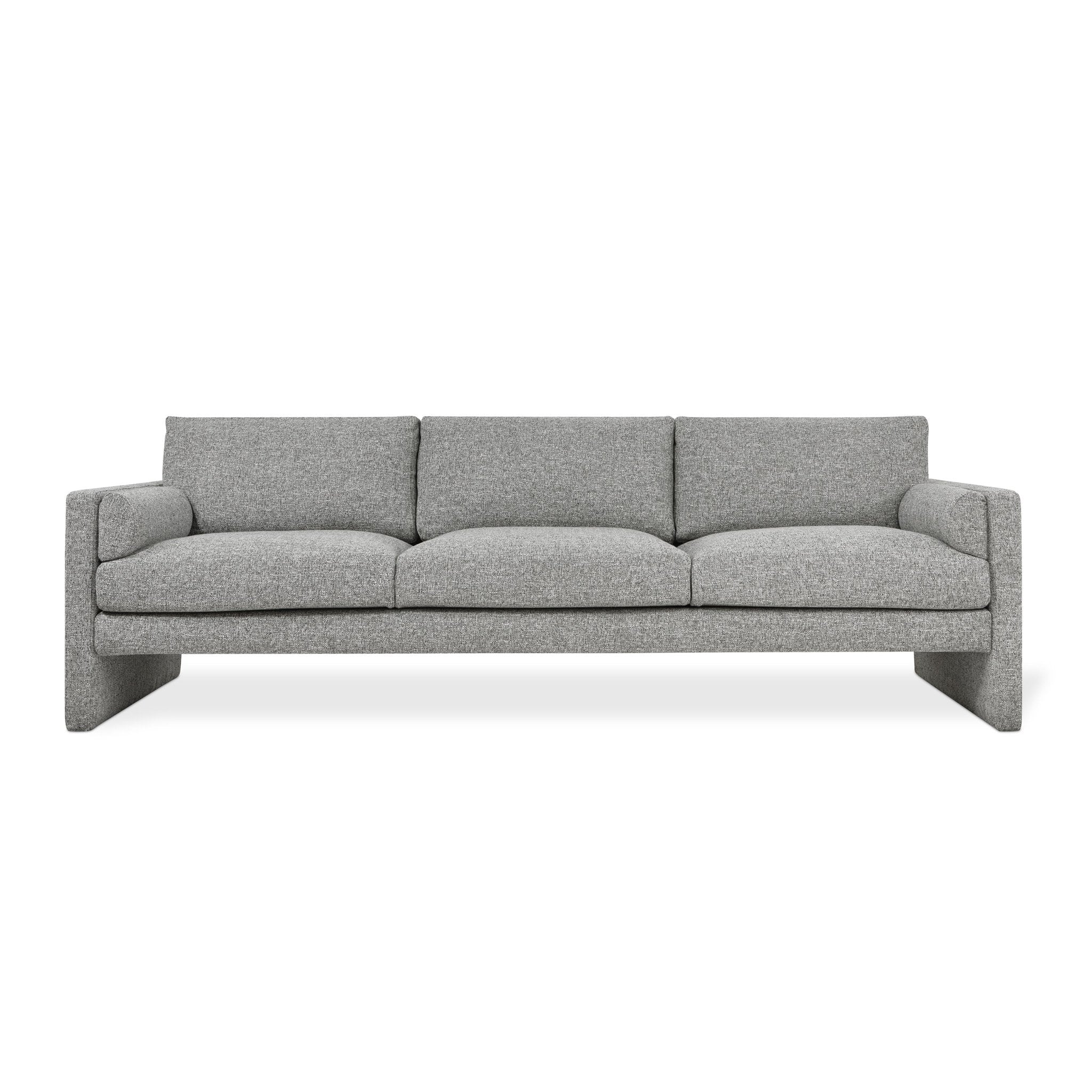 The Laurel Sofa makes a bold statement with its grounded arms and geometric silhouette, blending post-modern flair with Nordic minimalism. Designed for extended lounging, its extra-long frame and feather-filled cushions offer unmatched comfort. A suspended base adds visual lightness, while integrated side bolsters and reversible back cushions enhance the cozy experience. With a hidden center leg for added support and non-marking leveler feet for stability, Laurel is as functional as it is stylish—perfect for modern interiors seeking sculptural elegance.