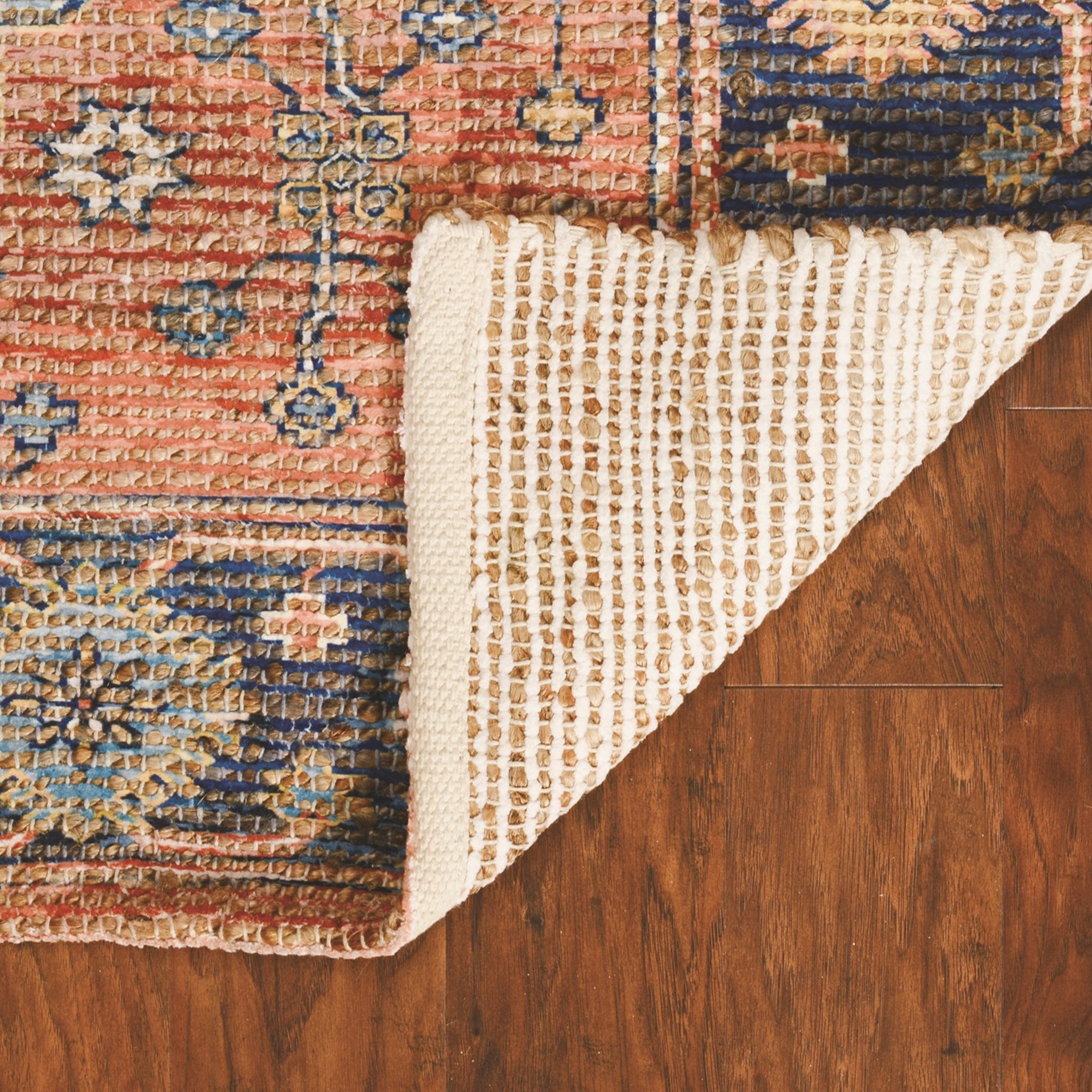 Handwoven of Jute & Polyester Chenille with No Backing. Made in India. Vacuum on floor setting only. Spot clean stains with mild soap and water.